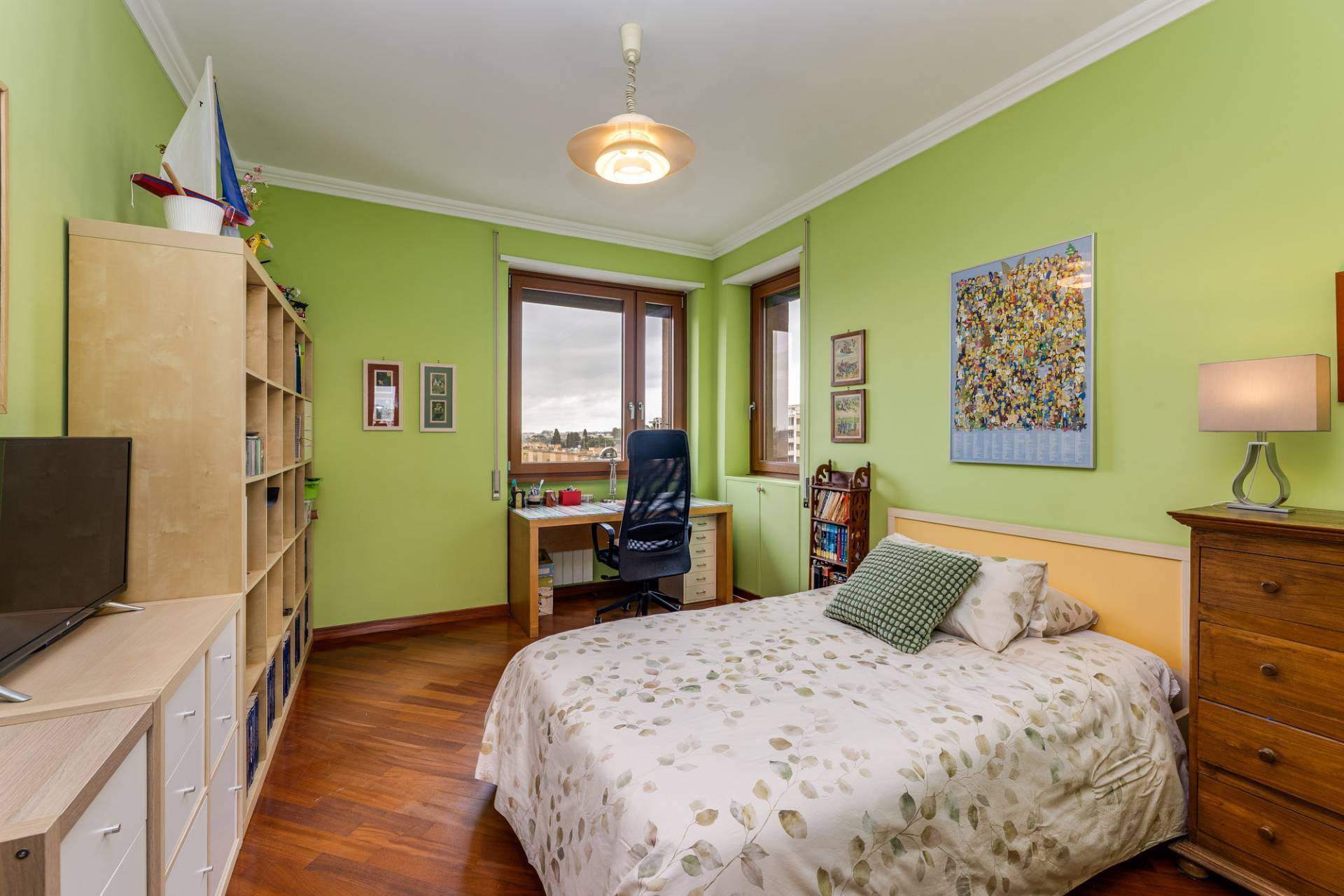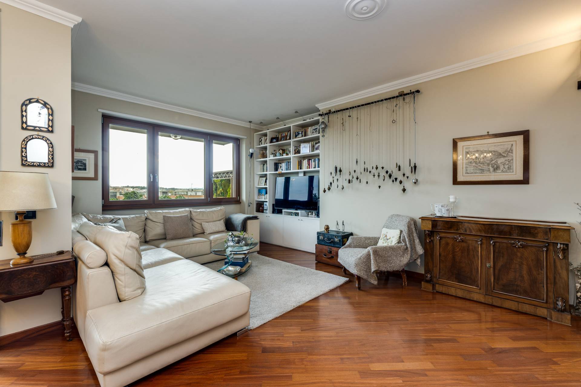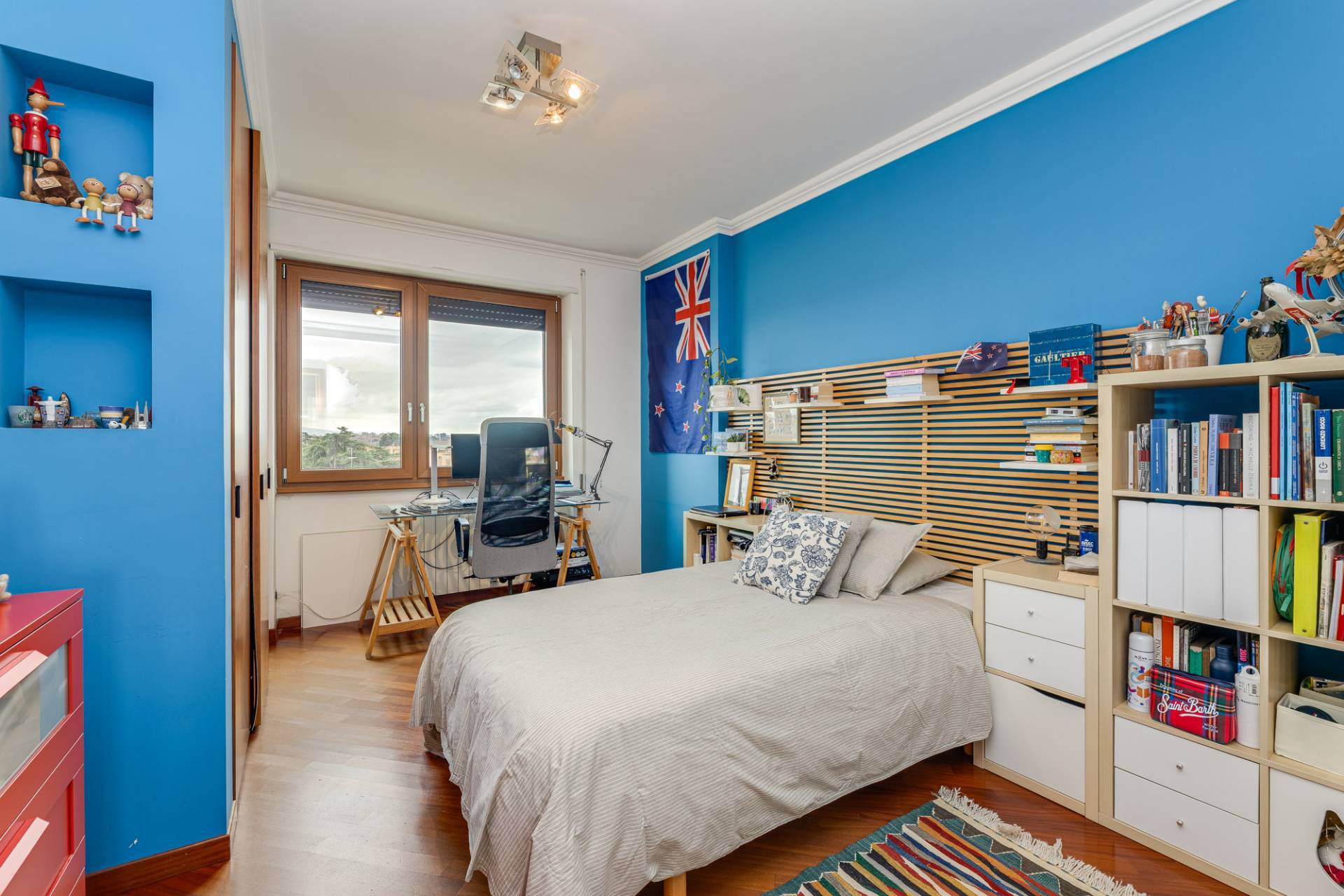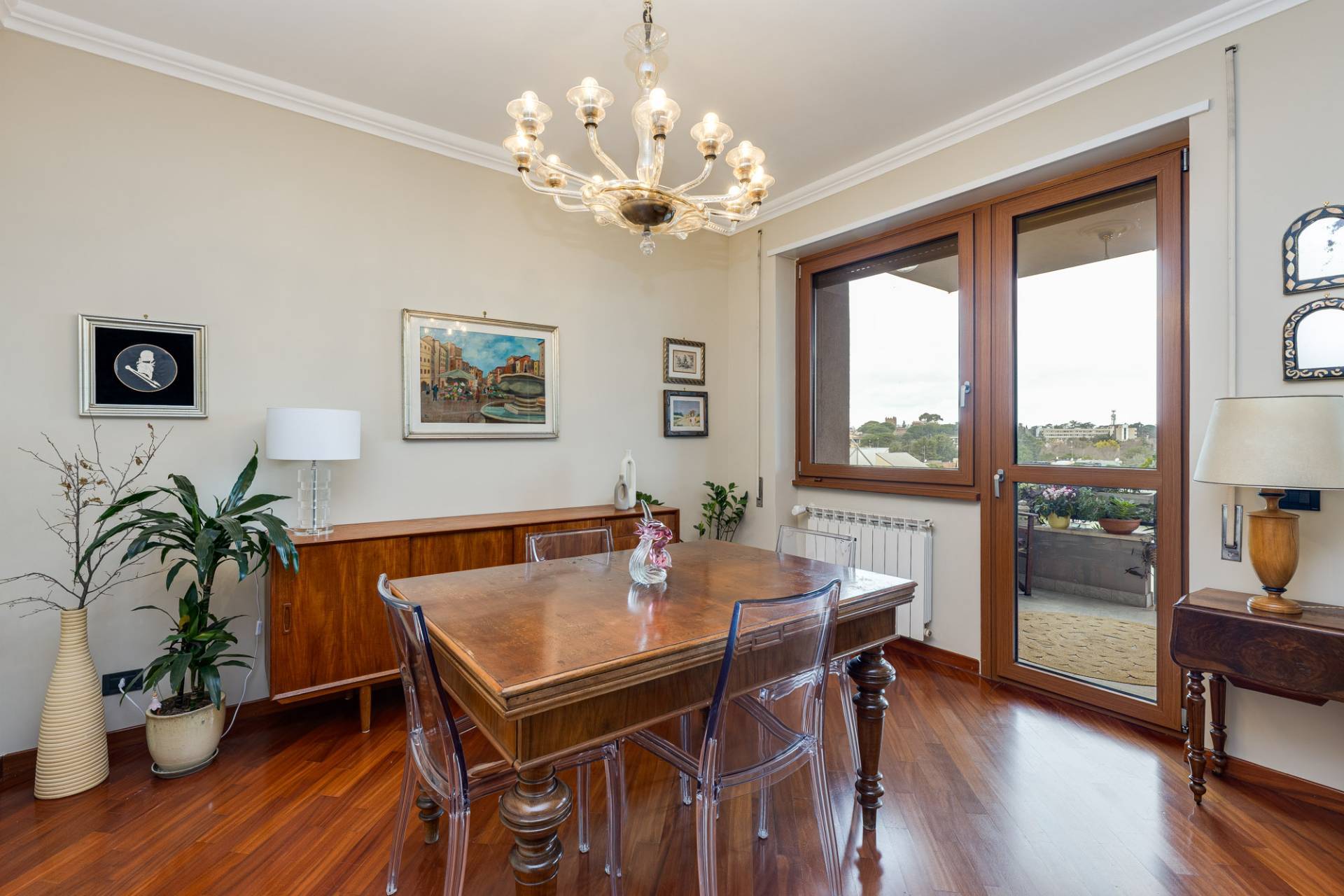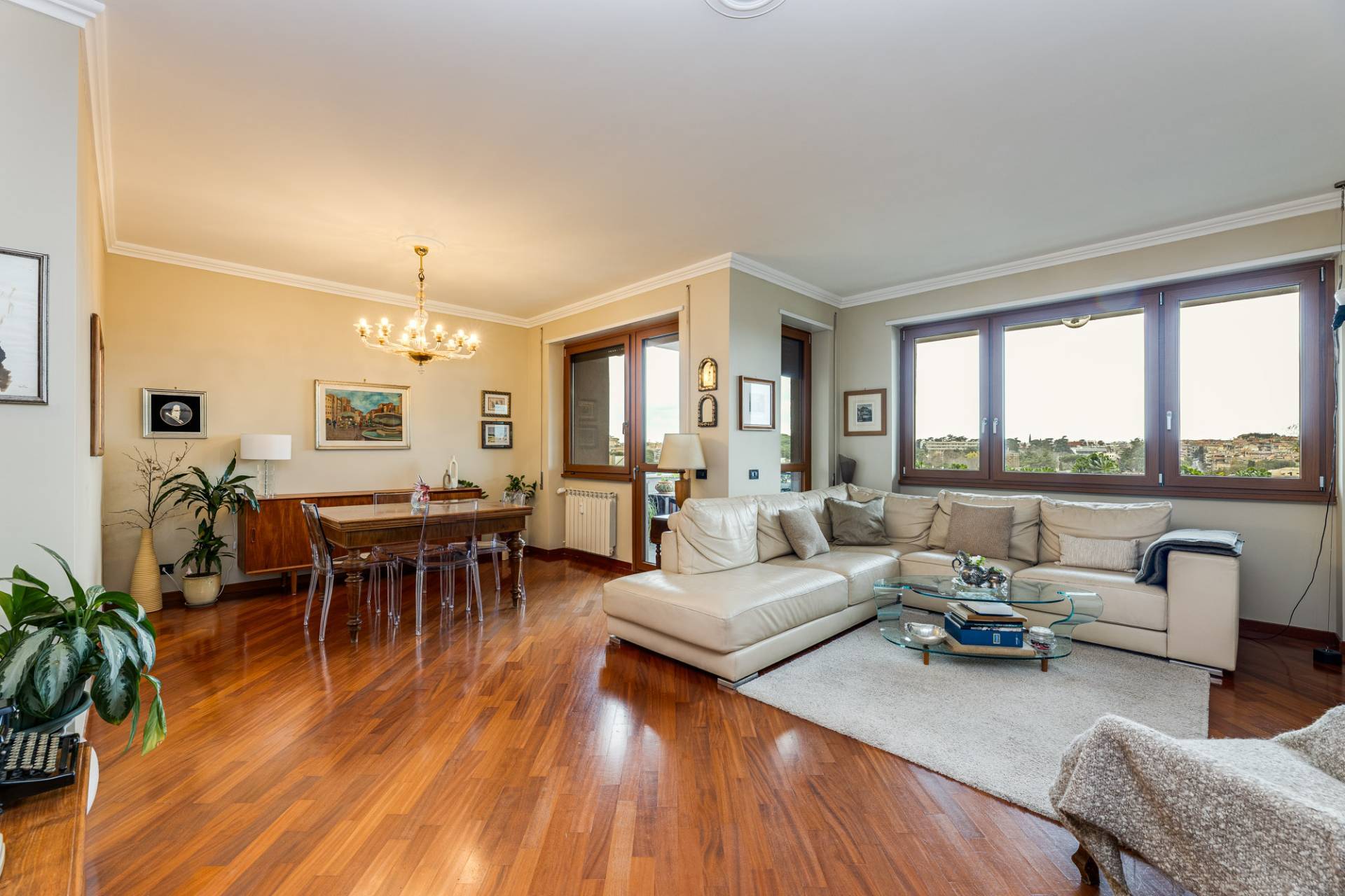 In Via Adriano Fiori, a breve distanza dai tre polmoni verdi del quartiere quali la Riserva naturale dell'Aniene, il Parco Petroselli ed il Parco di Aguzzano, proponiamo in vendita, al settimo piano di un edificio di otto piani costruito a metà anni '70, con ascensore, un appartamento di 145 mq catastali, doppia esposizione, in ottimo stato manutentivo. L'appartamento è così suddiviso: ampio salone con accesso diretto al balcone abitabile, due camere da letto matrimoniali, una camera con doppia esposizione, cucina abitabile con accesso al balcone, due bagni con cabina doccia e finestra. Completano la proprietà un posto auto coperto nel garage condominiale di 14 mq catastali ed un ampia cantina di 14 mq catastali. Parquet presente in tutto l'appartamento ad eccezione della cucina e dei due bagni. Infissi doppio vetro in pvc di ultima generazione, riscaldamento centralizzato con contabilizzatori.
