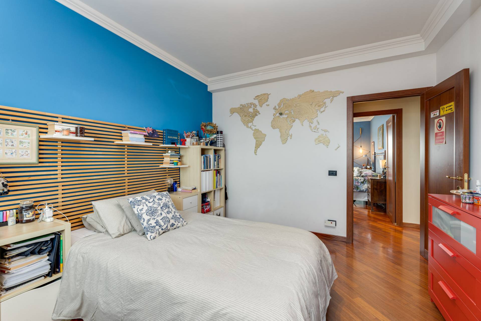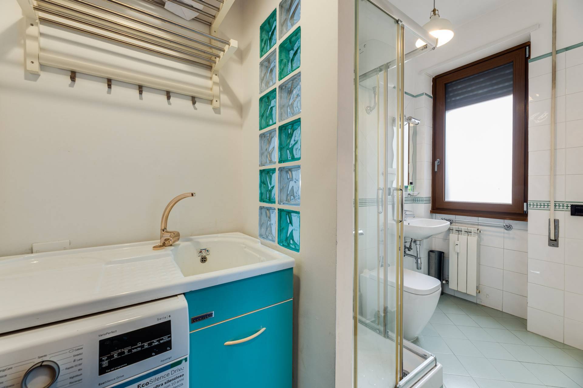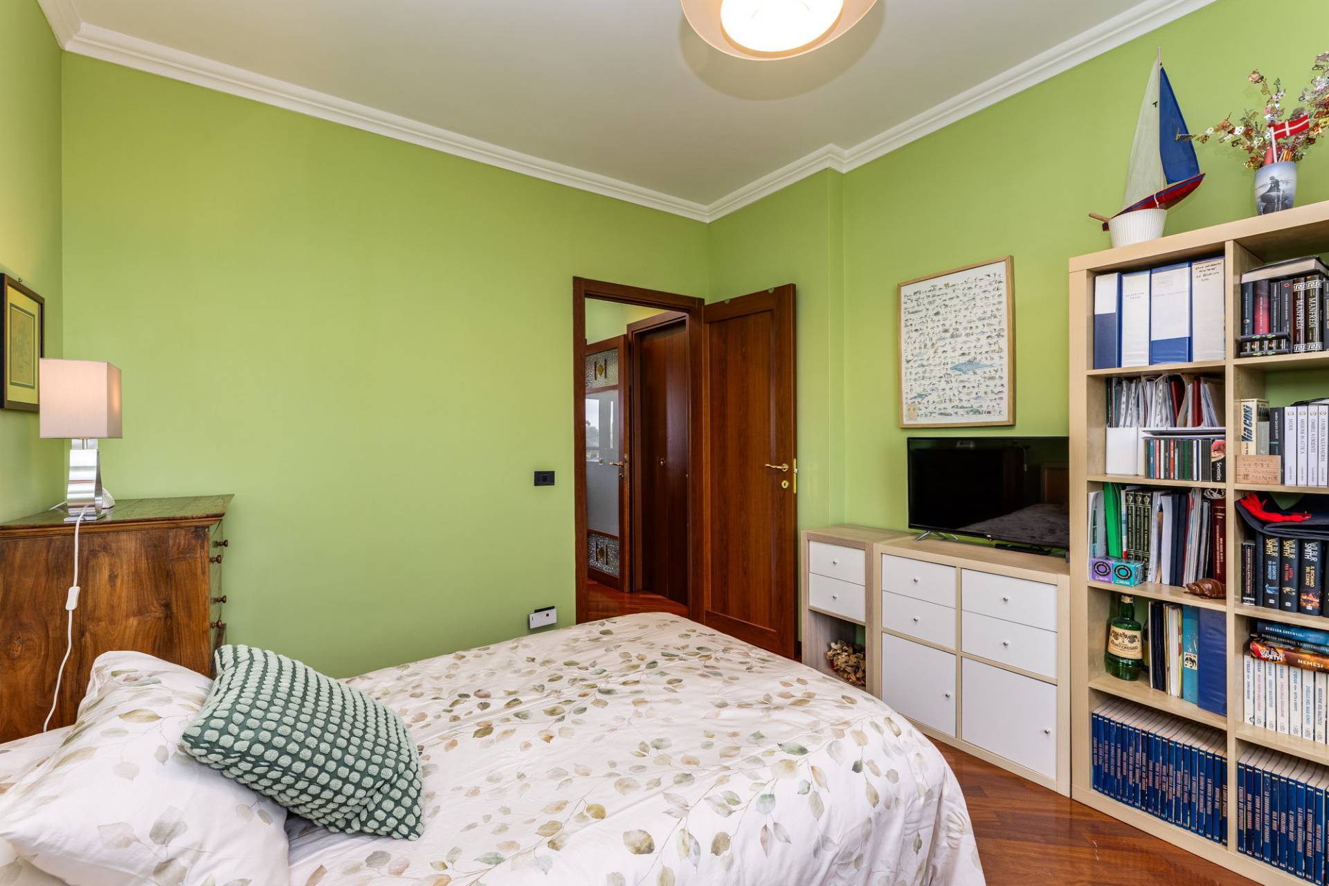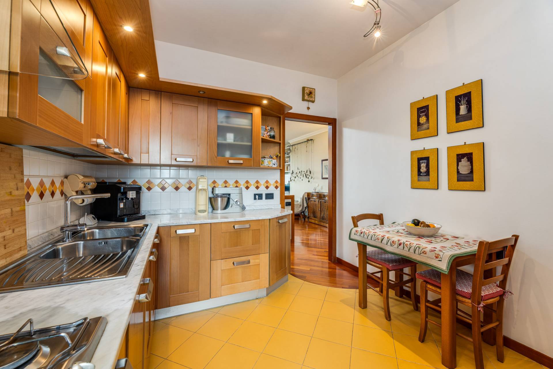 Ottimo stato, molto luminoso: ampio salone, tre camere, cucina, due bagni, ripostiglio, due balconi. Posto auto coperto e Cantina.
