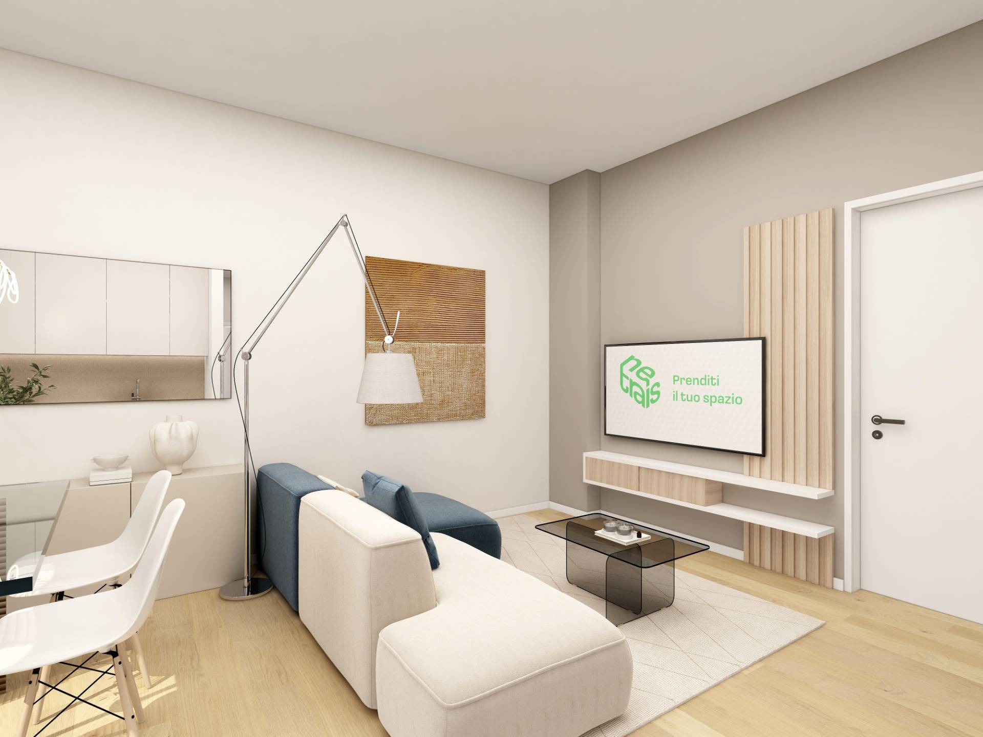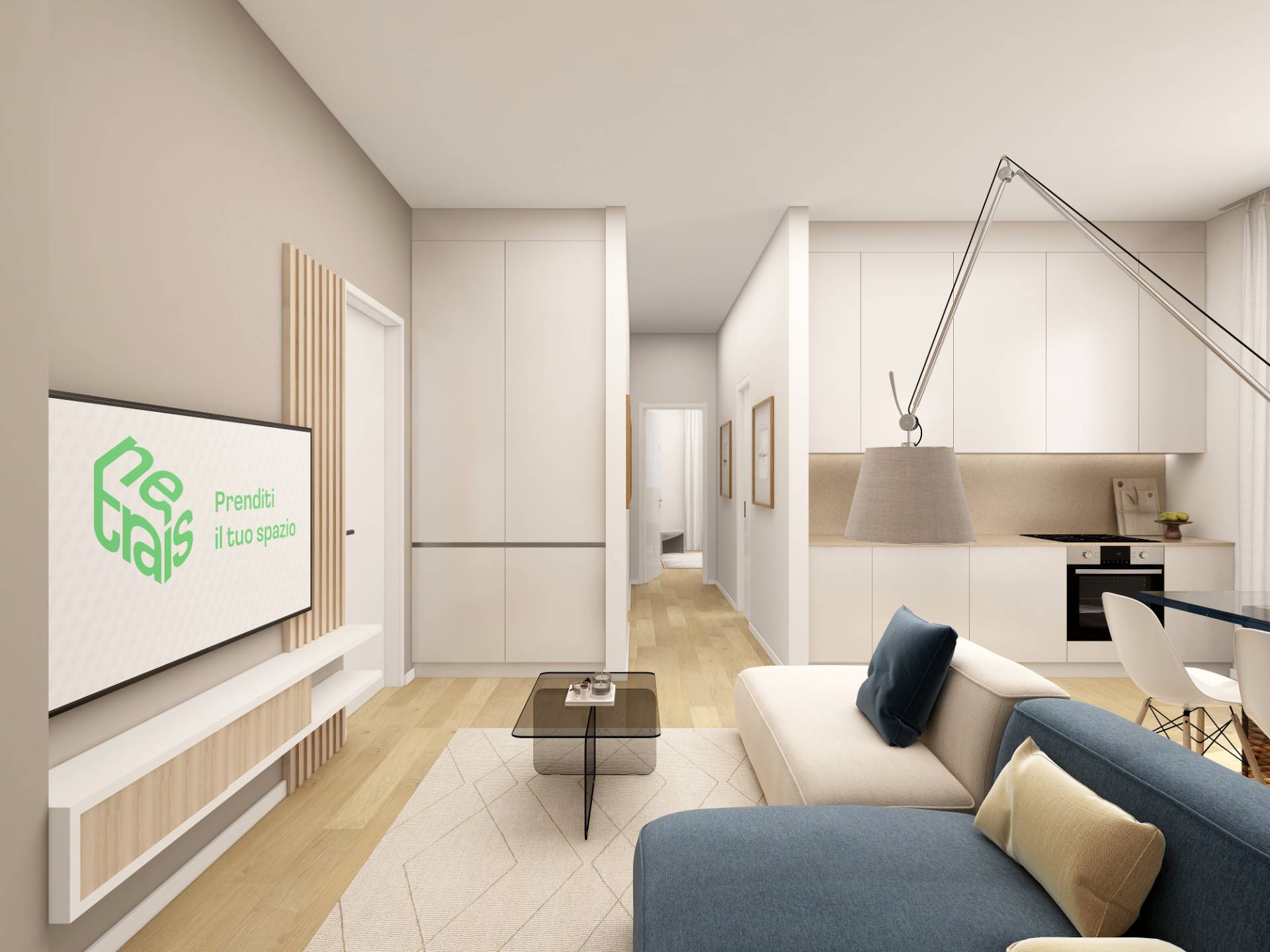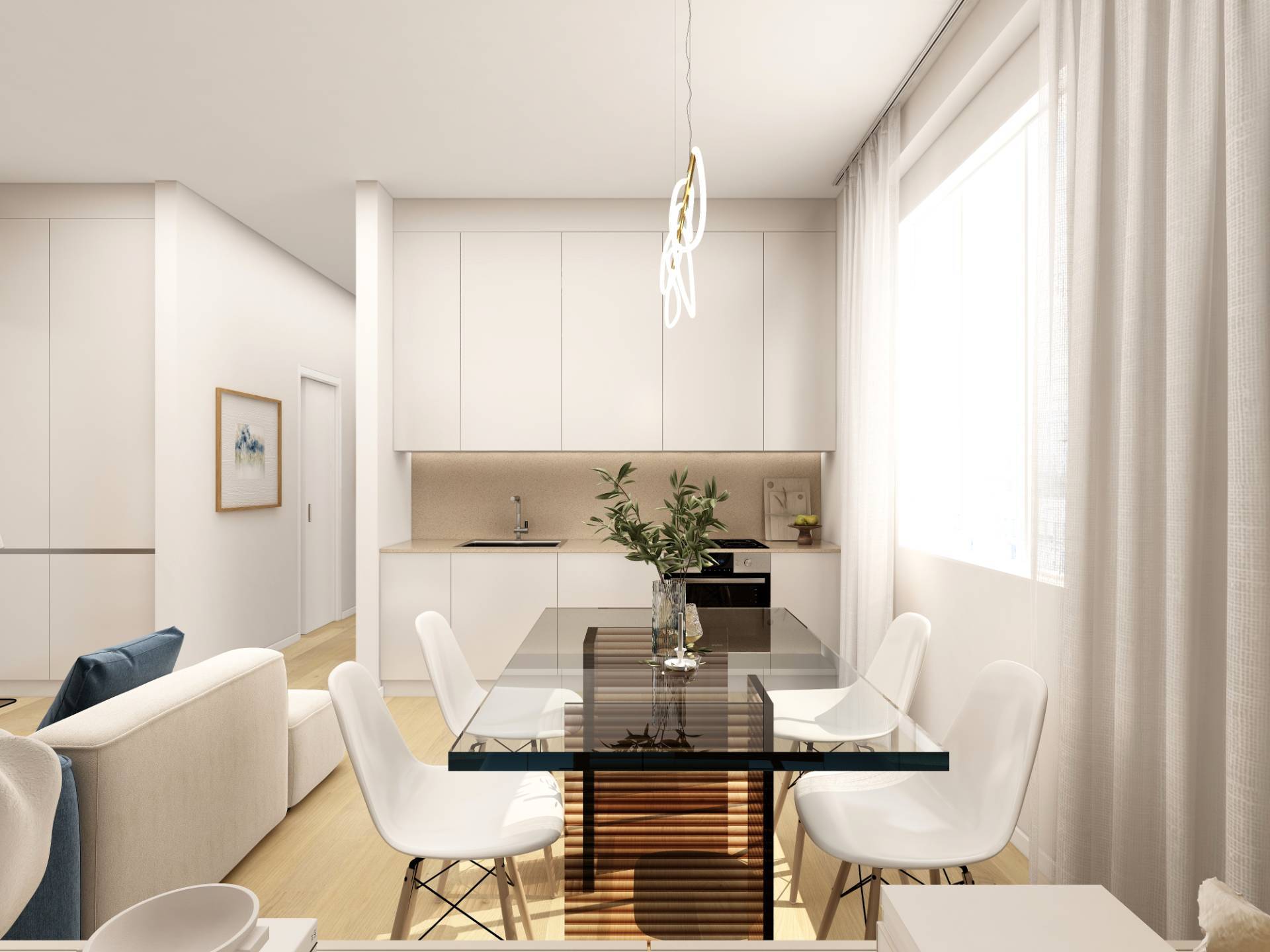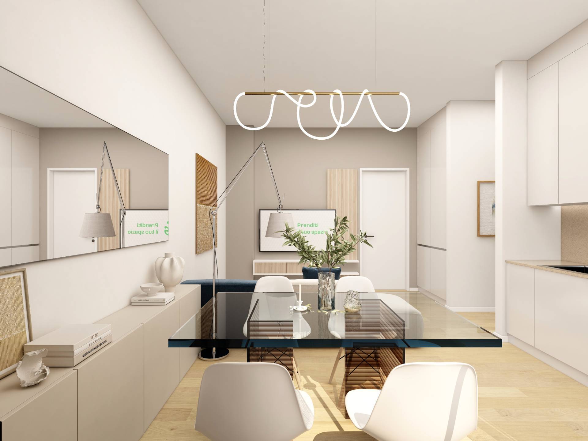 - ingresso su luminosa zona living con angolo cottura e finestre