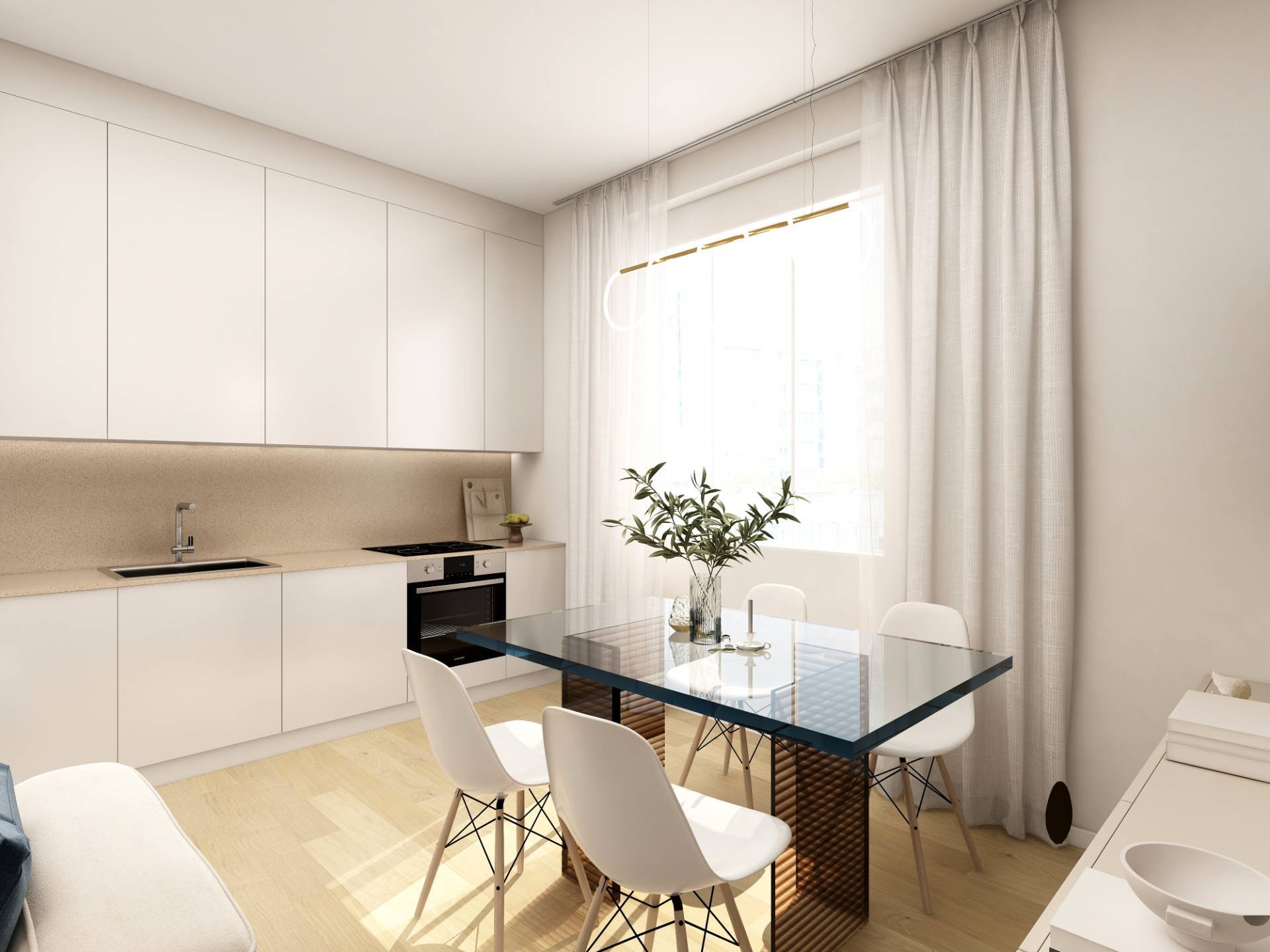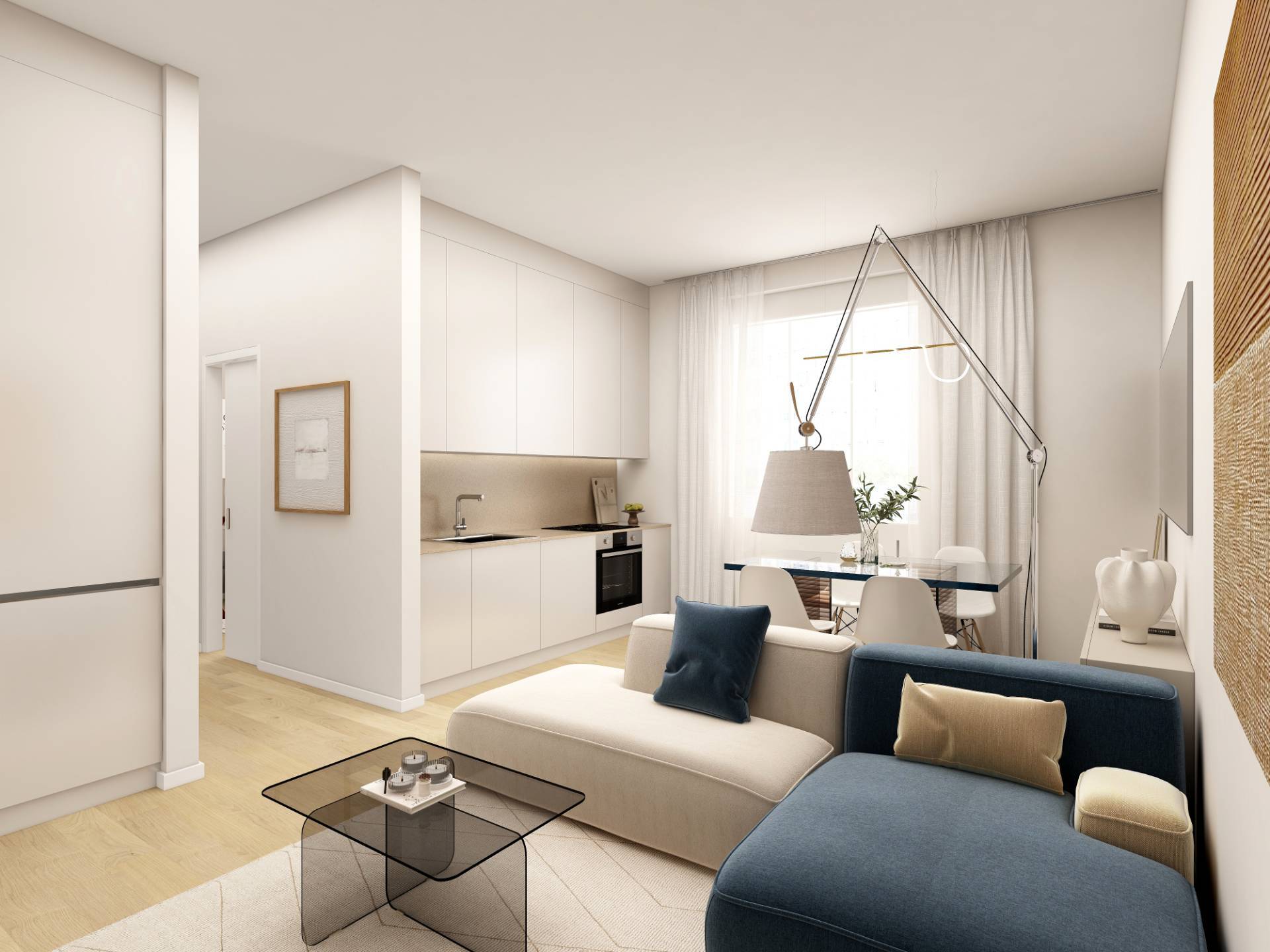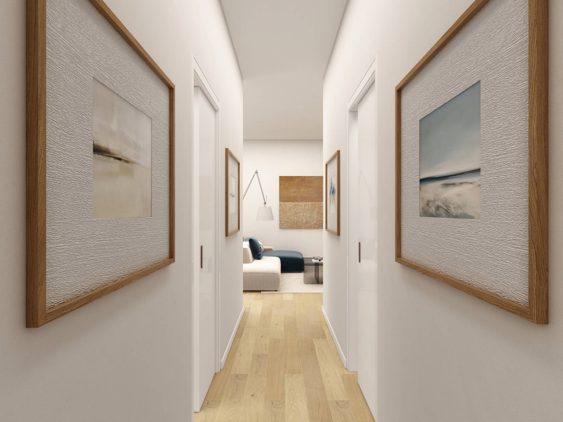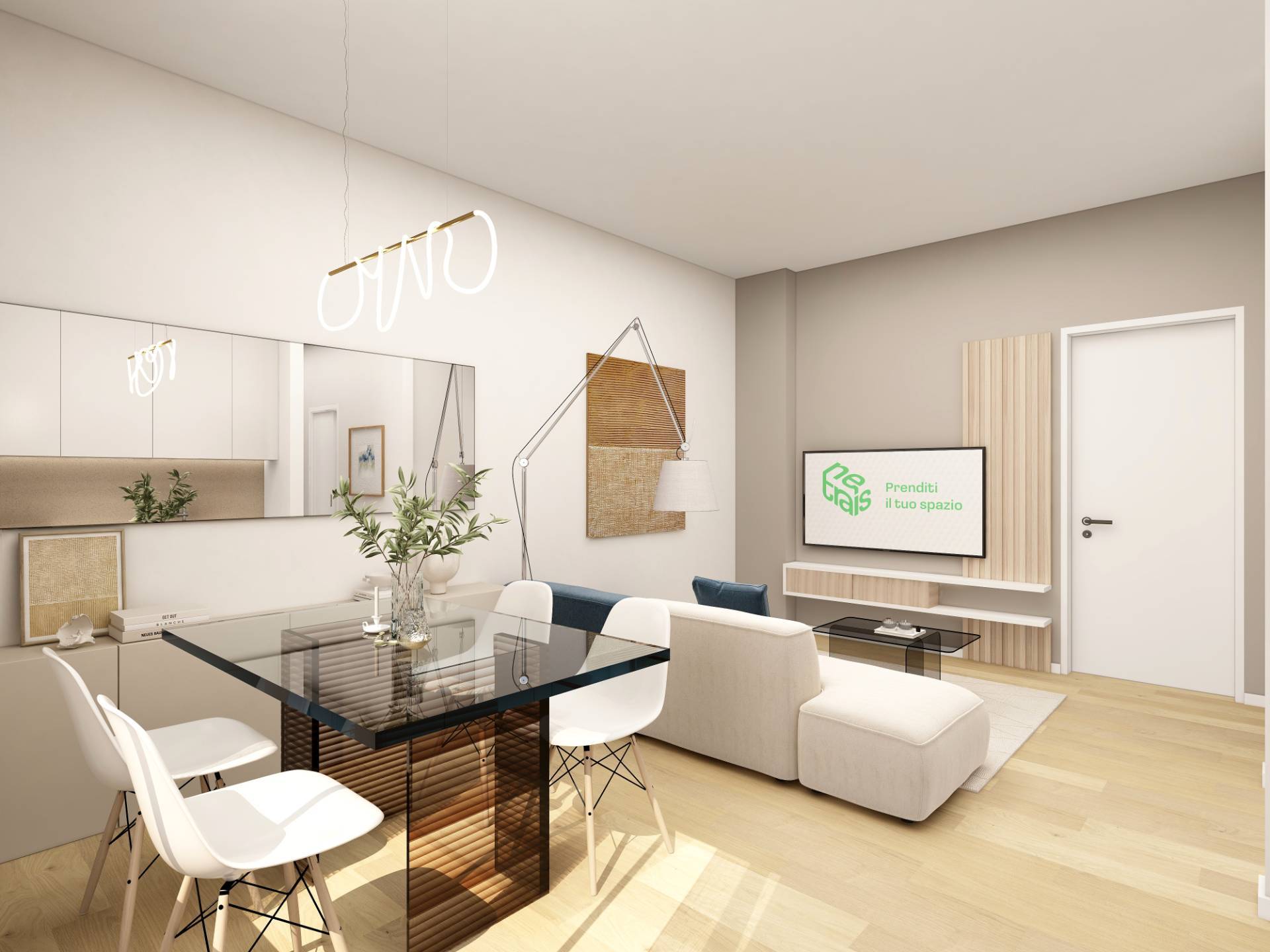 - ingresso su luminosa zona living con angolo cottura e finestre
