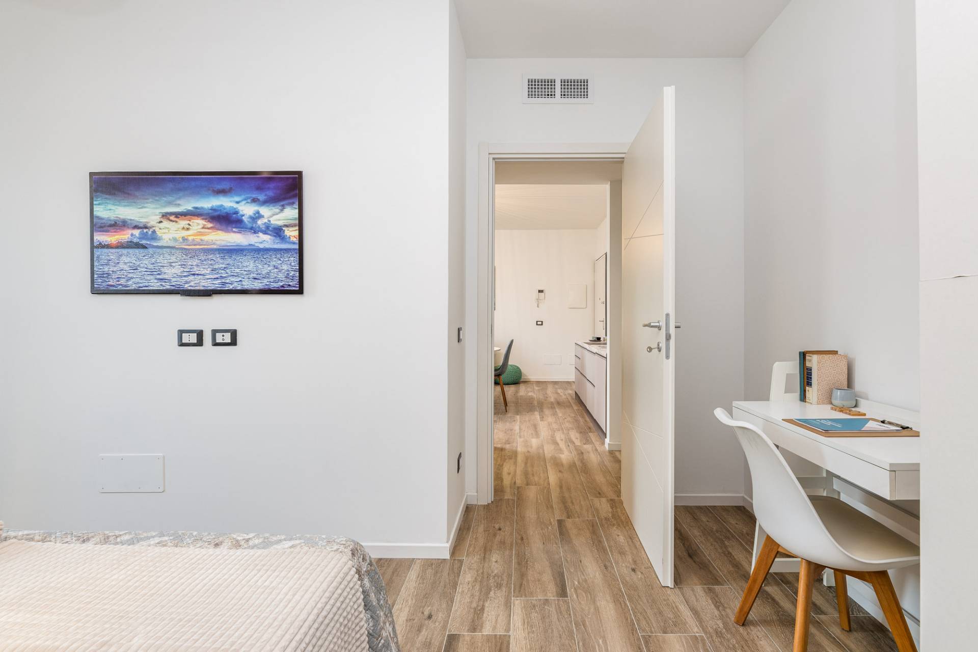 L'abitazione fa parte di una nuova costruzione appena realizzata provvista di ogni tipologia di certificazione e già in regola con le nuove direttive europee in materia di consumi e sostenibilità. Primo piano composto da: soggiorno con cucina a vista, disimpegno, camera da letto, bagno con finestra, ampio balcone e posto auto scoperto.