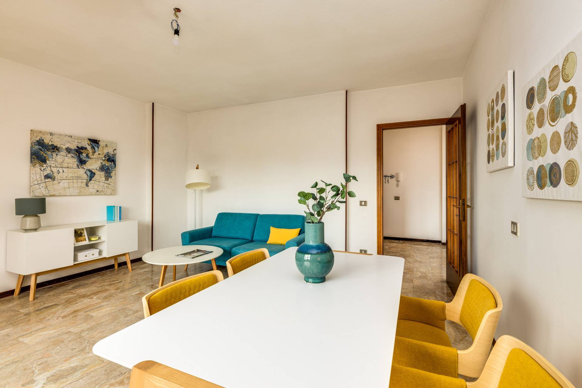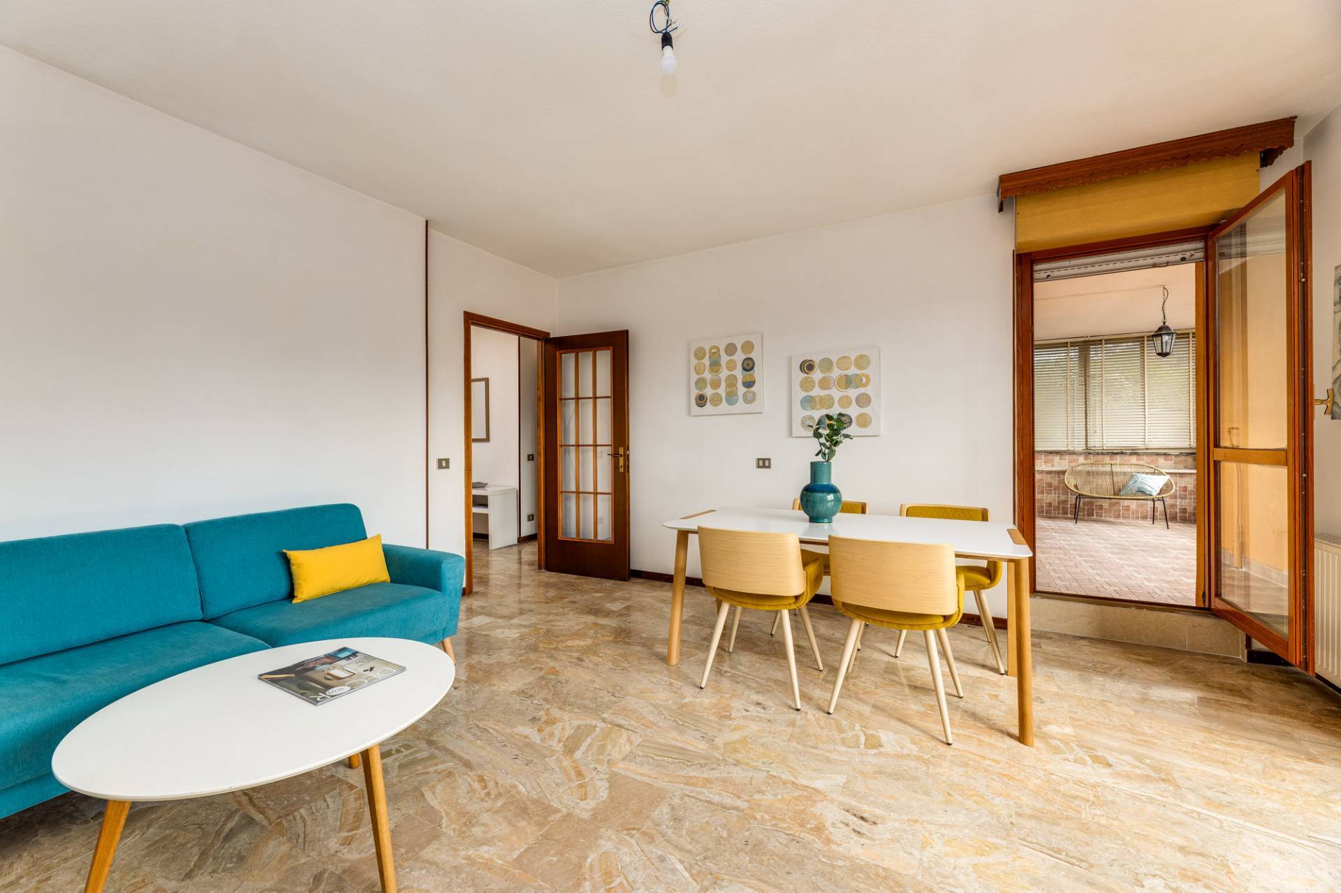 Appartamento di ampia metratura: Soggiorno, tre camere, cucina, due bagni, terrazzo, due balconi. Cantina e BOX AUTO.