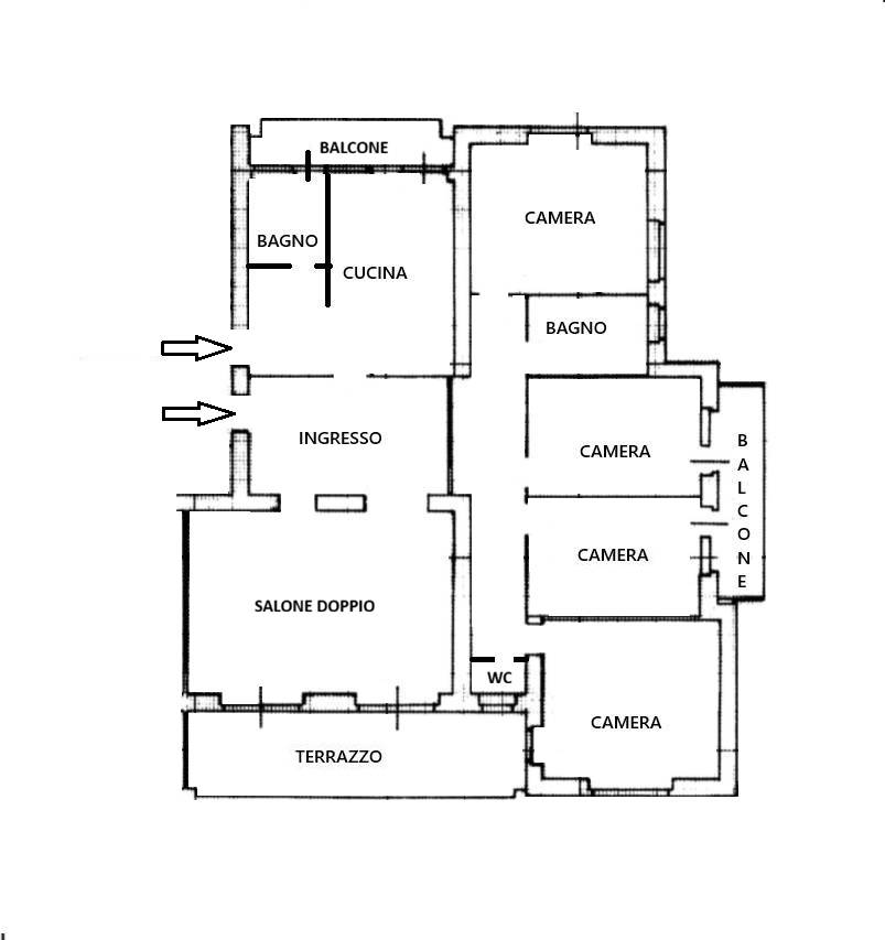 L'immobile si apre su un ampio salone con affaccio su un gradevole terrazzo. La spaziosa cucina abitabile dispone di un comodo balcone di servizio. Completa la zona giorno un bagno con finestra. La zona notte è composta da quattro camere da letto, un balcone e due bagni con finestra. Tripla esposizione.