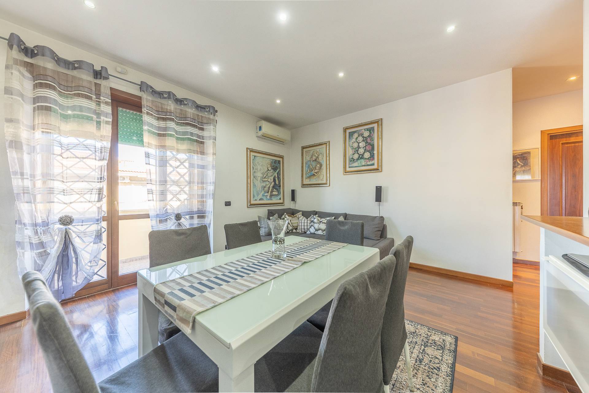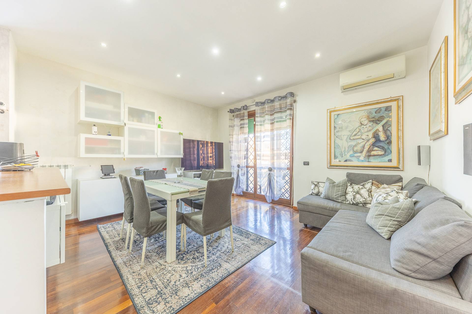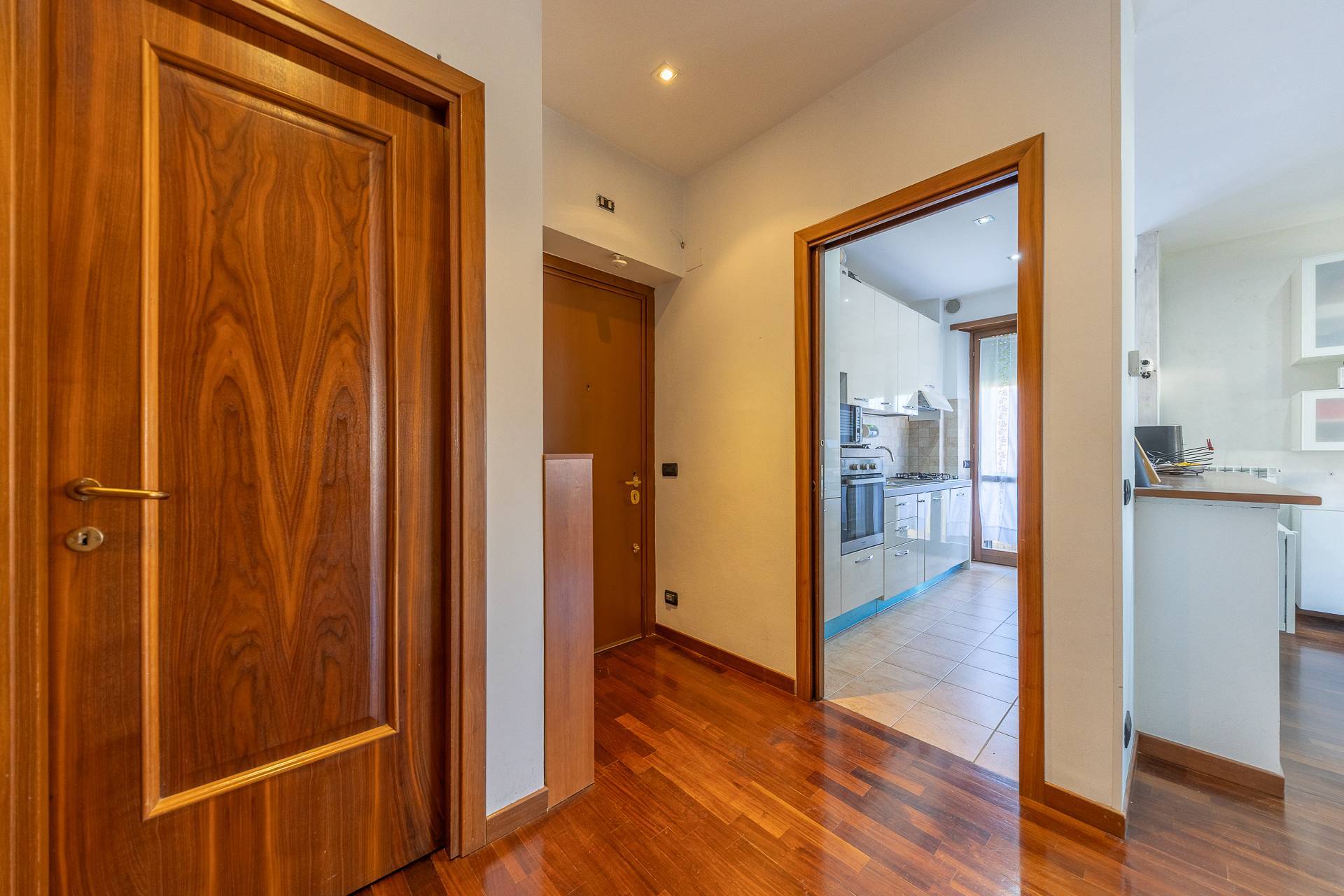 L'appartamento colpisce subito per la sensazione di accoglienza e per la qualità delle finiture. Gli ambienti sono ben distribuiti e funzionali: un soggiorno ben organizzato con accesso al balcone, una cucina a vista moderna, anch'essa con accesso sul secondo balcone, due camere da letto confortevoli e due bagni, di cui uno in camera. Il parquet in tutte le stanze dona calore e armonia agli spazi, rendendo l'abitazione elegante ma al tempo stesso pratica e vivibile.