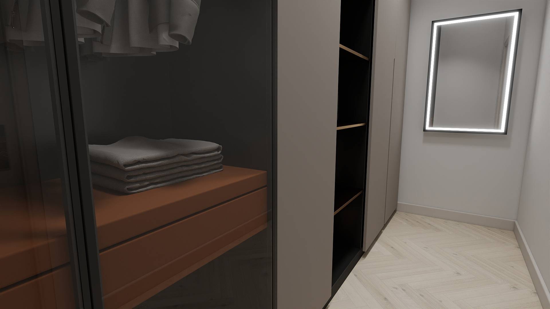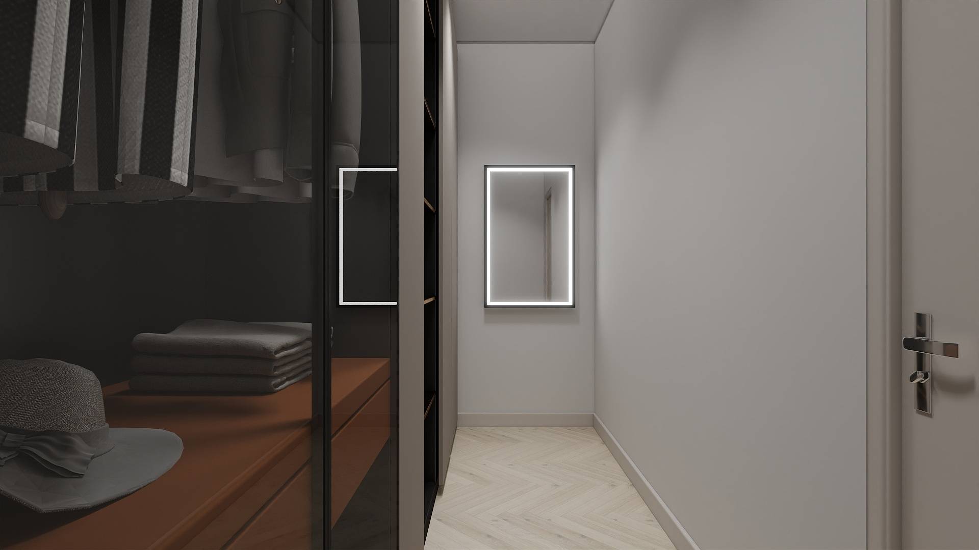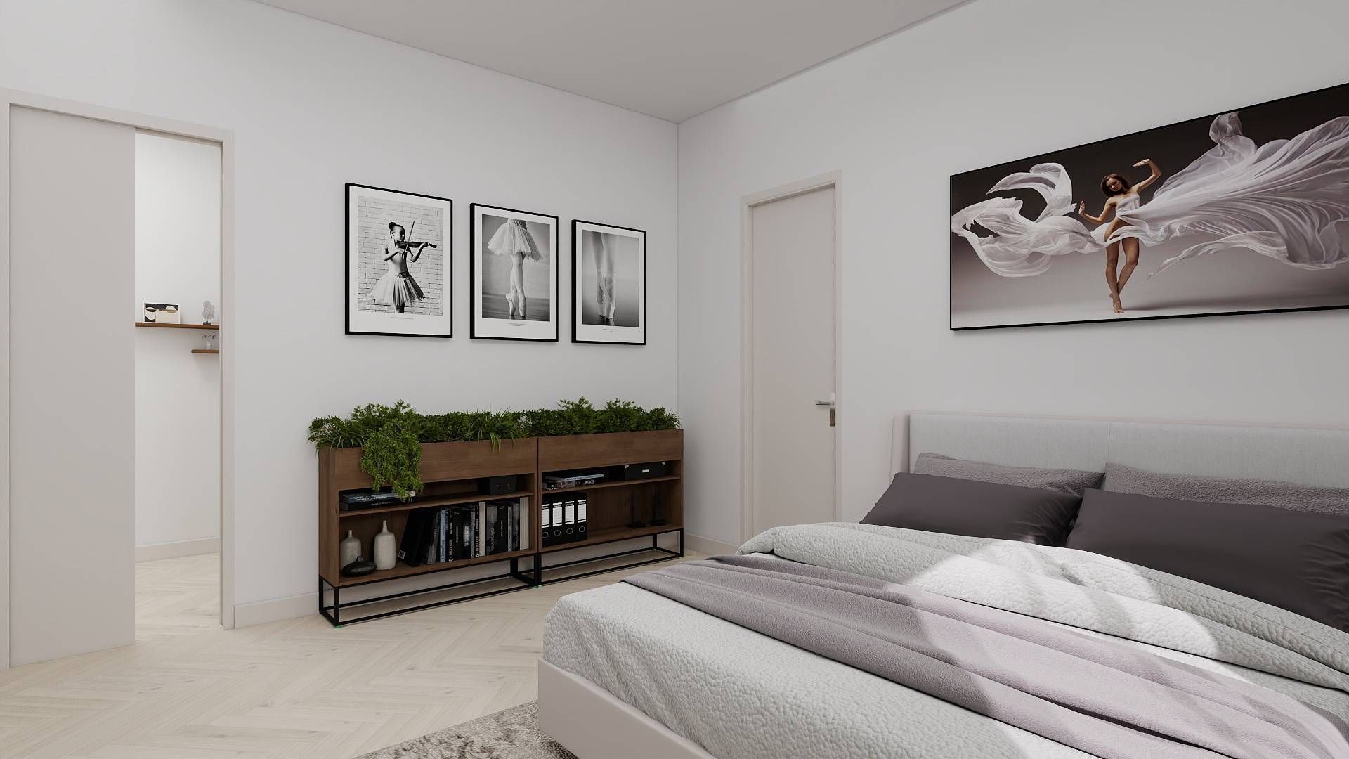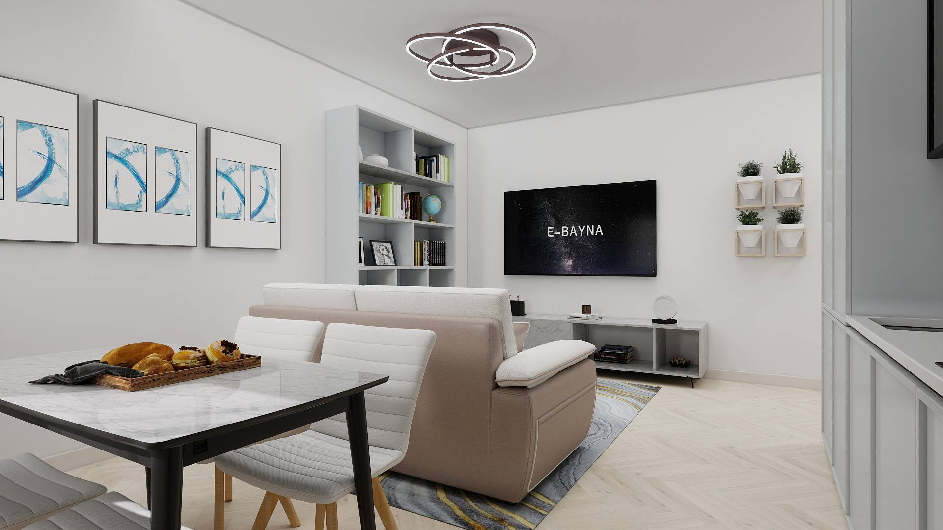 Ingresso, accogliente soggiorno con cucina a vista, un bagno ed una camera con cabina armadio.
