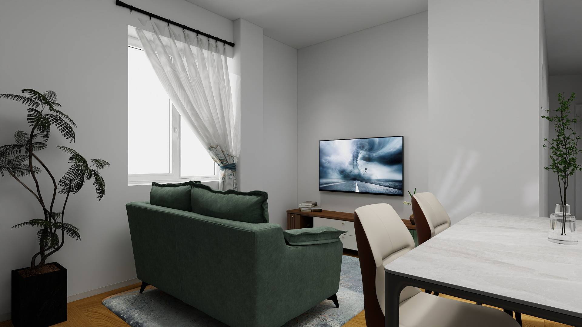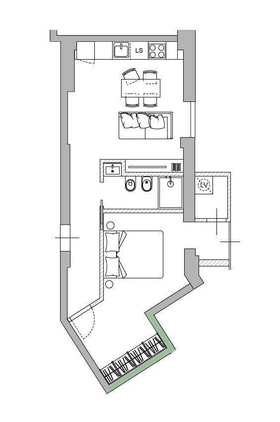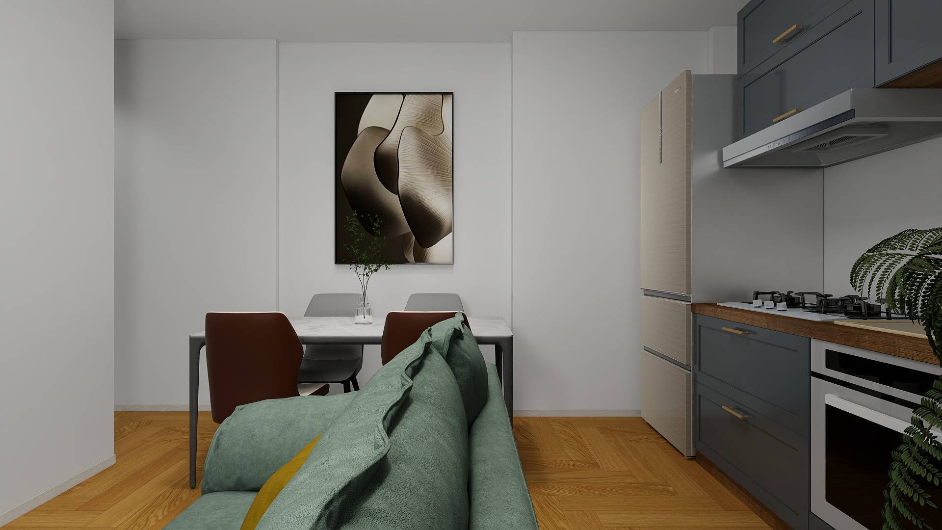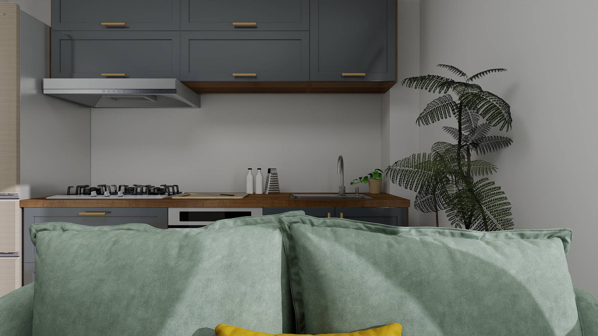 Ingresso, accogliente soggiorno con cucina a vista, un bagno, un'ampia camera da letto ed un ripostiglio.