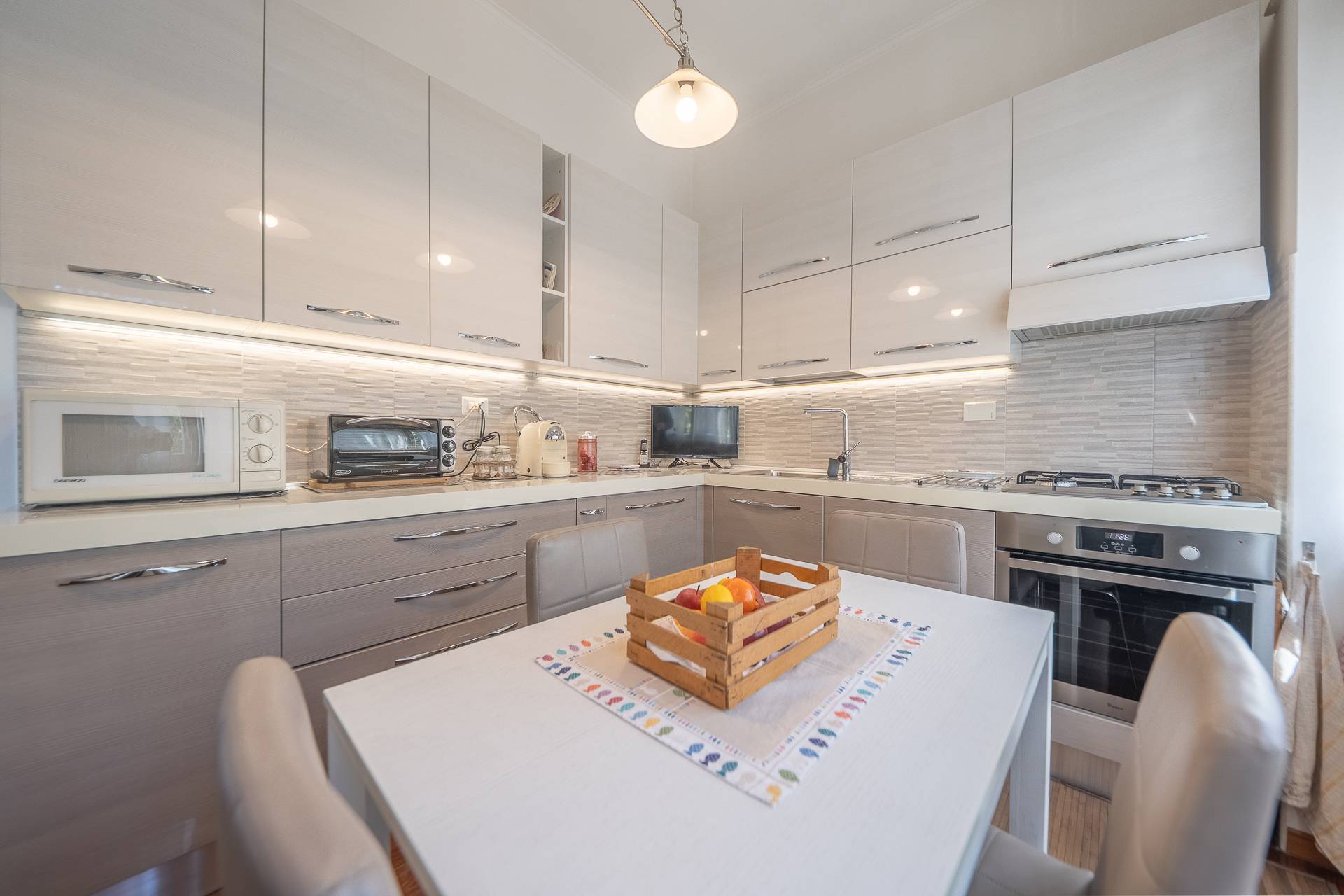 Composizione interna: Ampio soggiorno con accesso diretto al balcone, cucina abitabile, ripostiglio, camera matrimoniale con bagno privato, secondo bagno, due ulteriori stanze ideali per smart working, una delle quali dotata di balcone