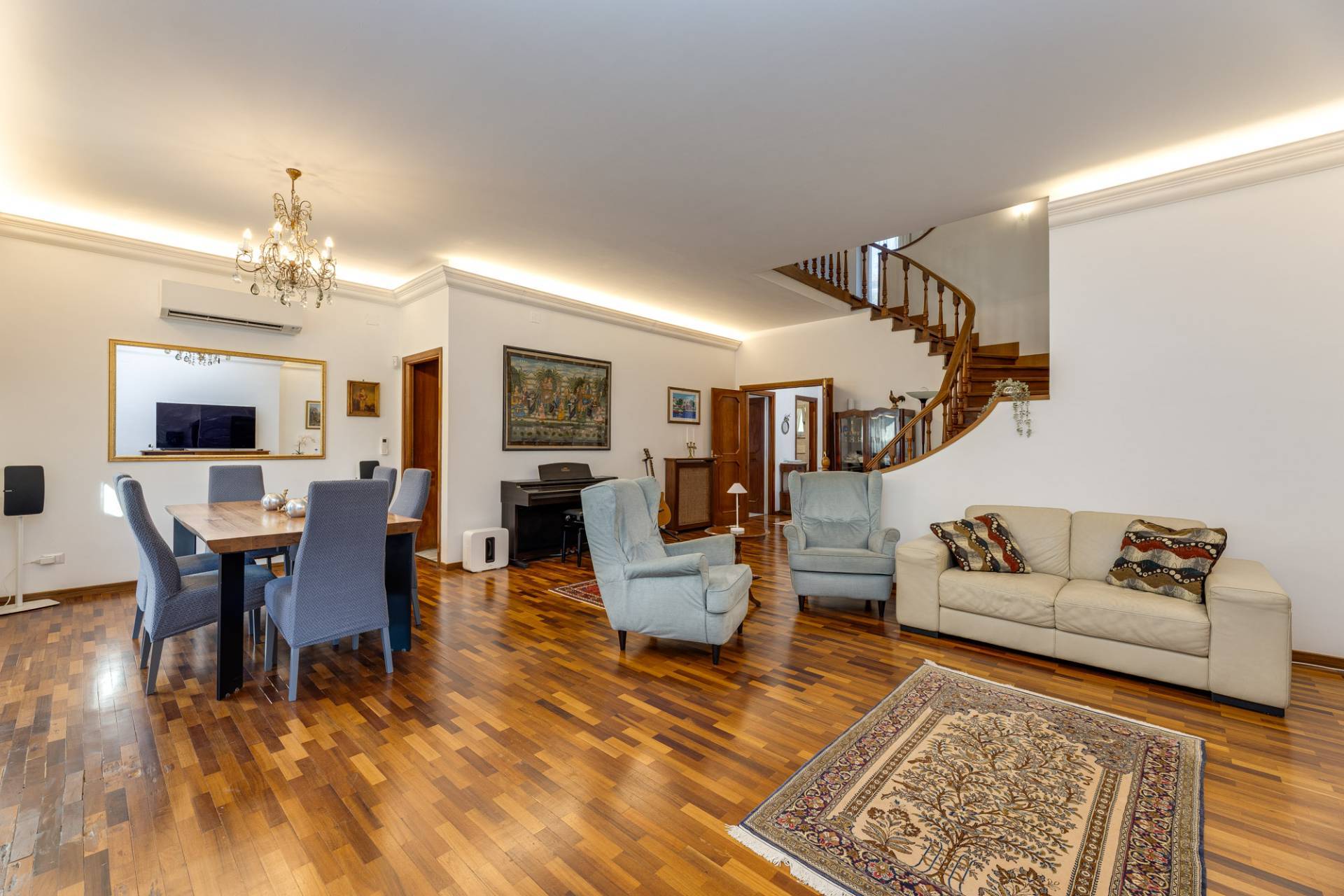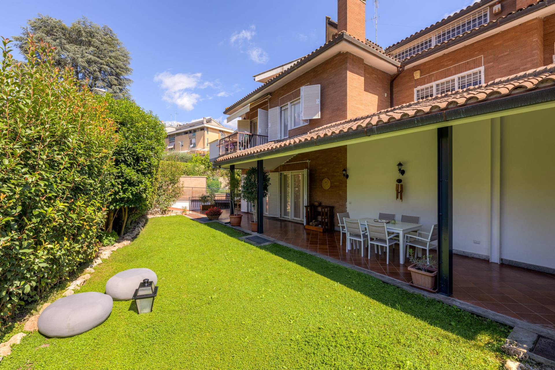 Torrino Mezzocammino, nel cuore dell'esclusivo quartiere residenziale "Tre Pini" e precisamente in Via Edgardo Negri, Villa di ampia metratura su quattro livelli con gradevole spazio esterno.