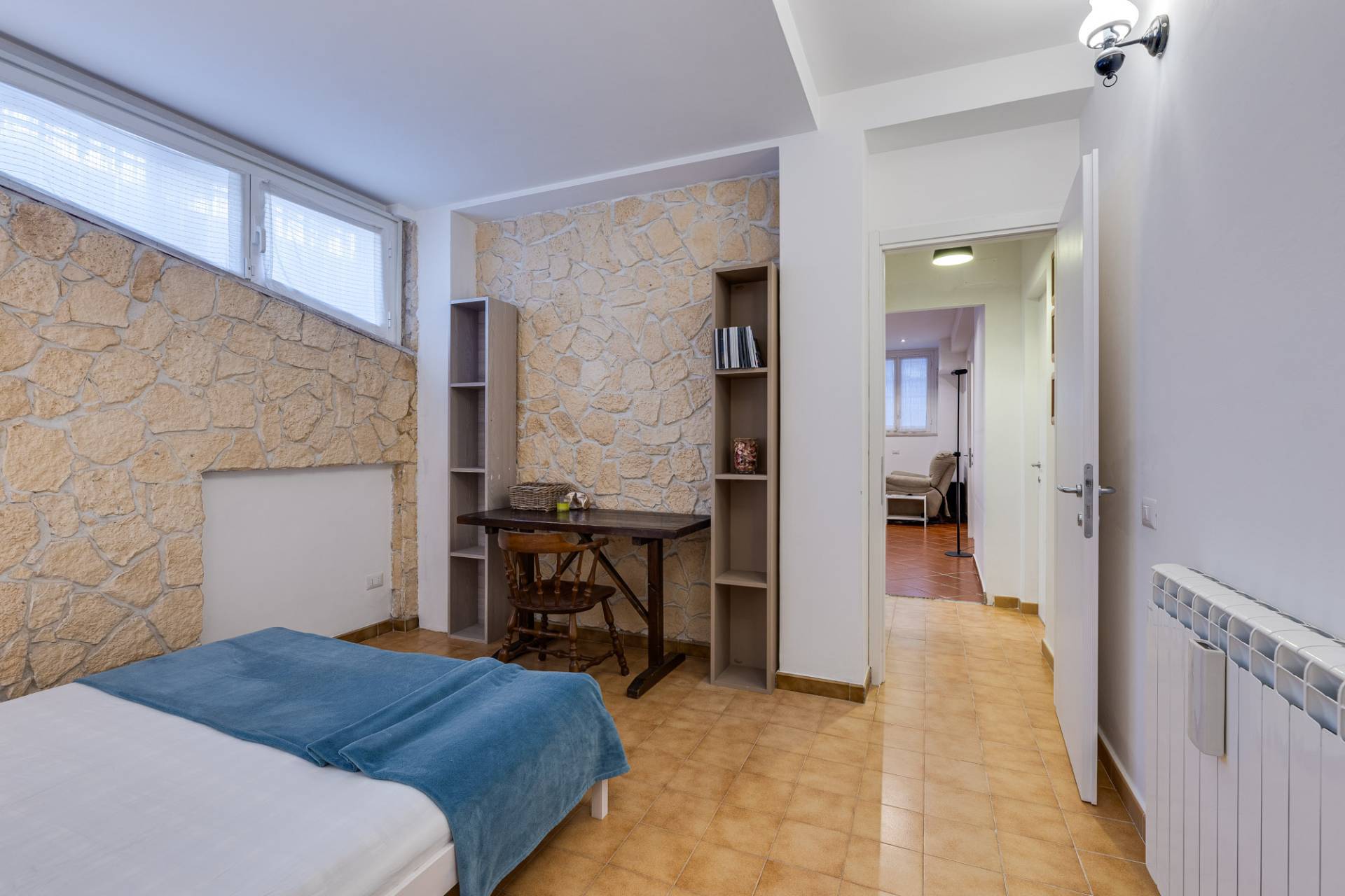 Salendo al secondo piano una graziosa mansarda composta da camera, studio, bagno e balcone.