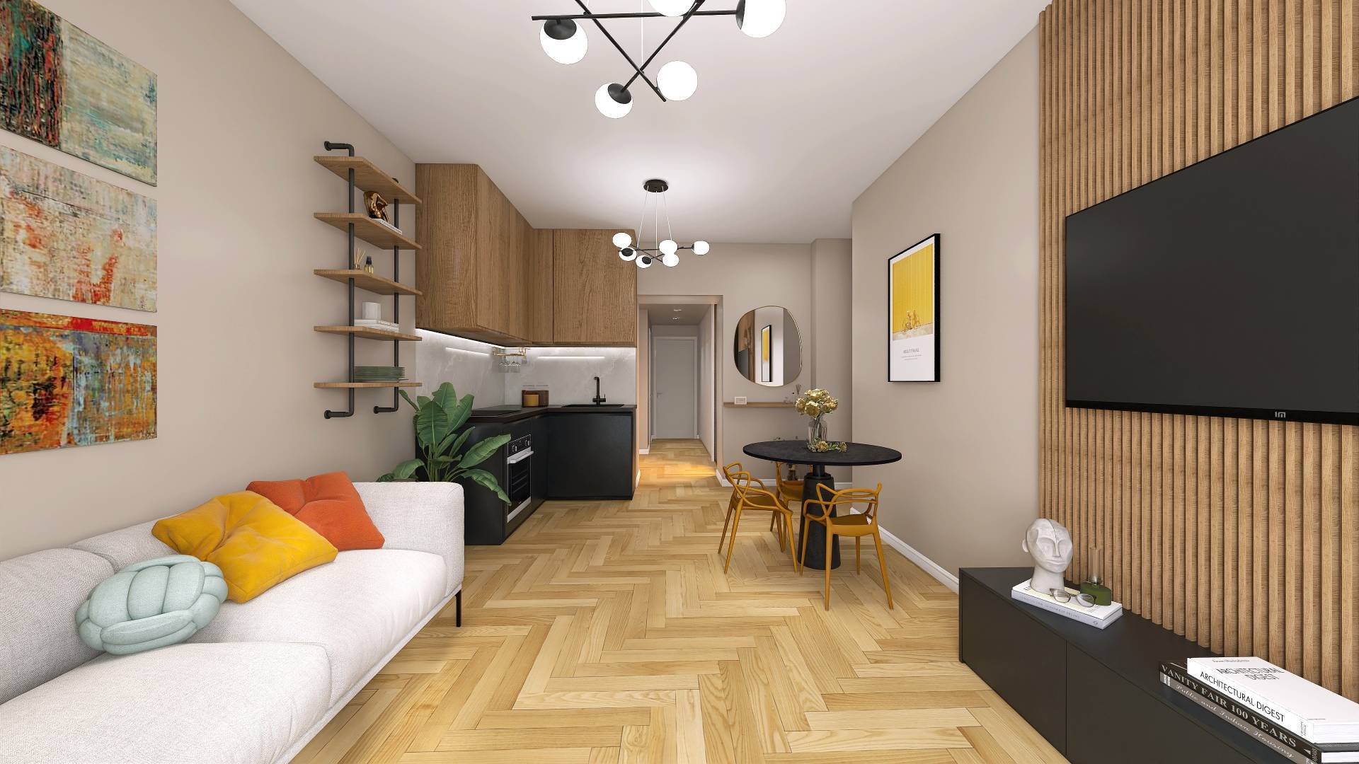 L'immobile è composto da soggiorno con angolo cottura, una camera da letto matrimoniale con bagno privato e un secondo bagno, con spazi ben distribuiti e un'atmosfera accogliente e raffinata. La luce naturale valorizza ogni ambiente, rendendo l'abitazione particolarmente piacevole e funzionale.