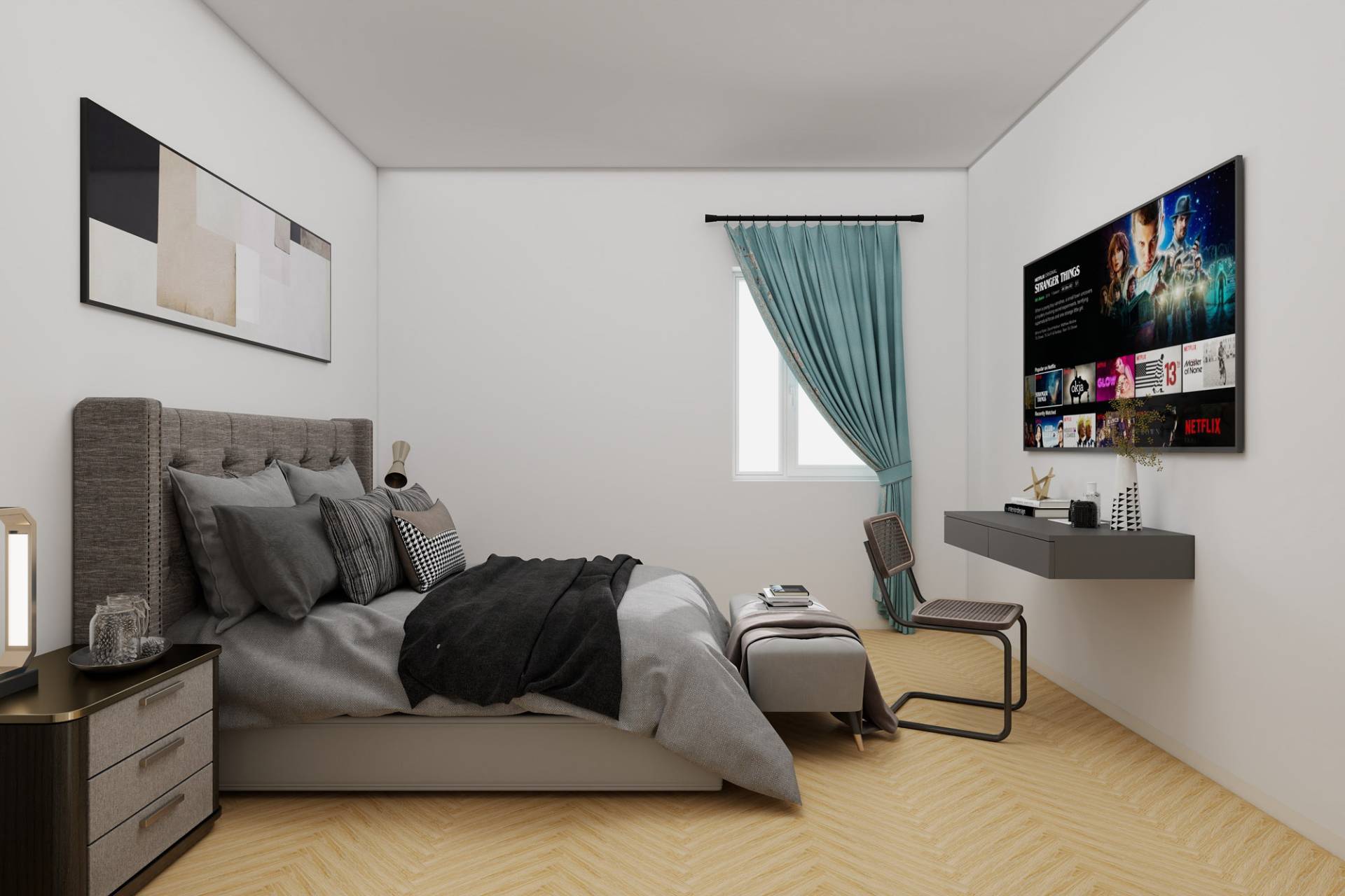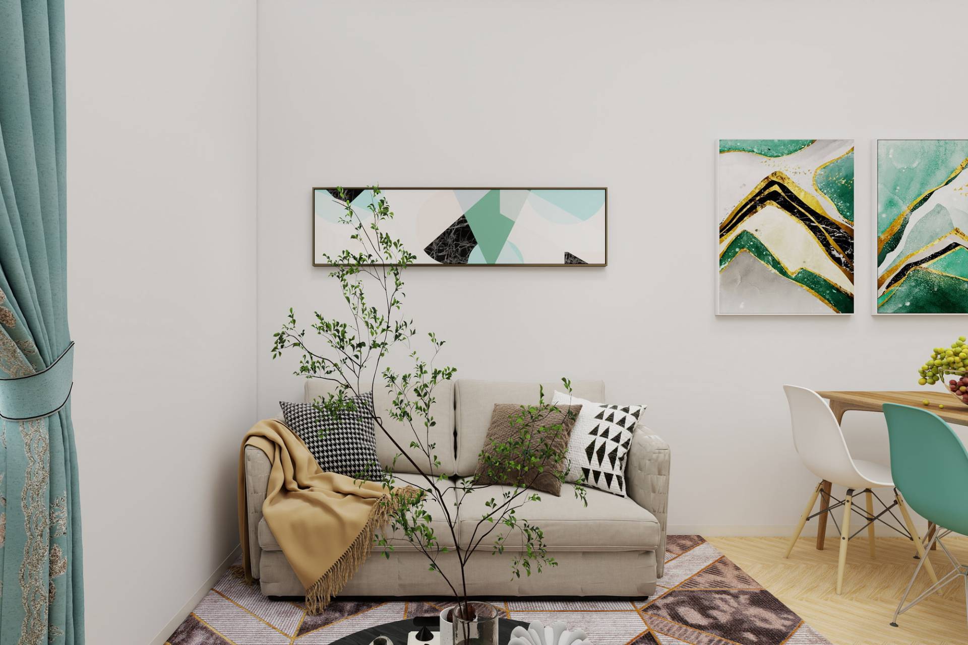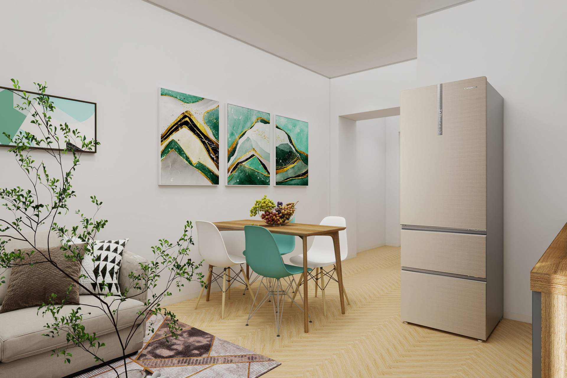 Ingresso, accogliente soggiorno con cucina a vista, camera, cameretta, bagno e ripostiglio. Luminoso con affacci esterni.