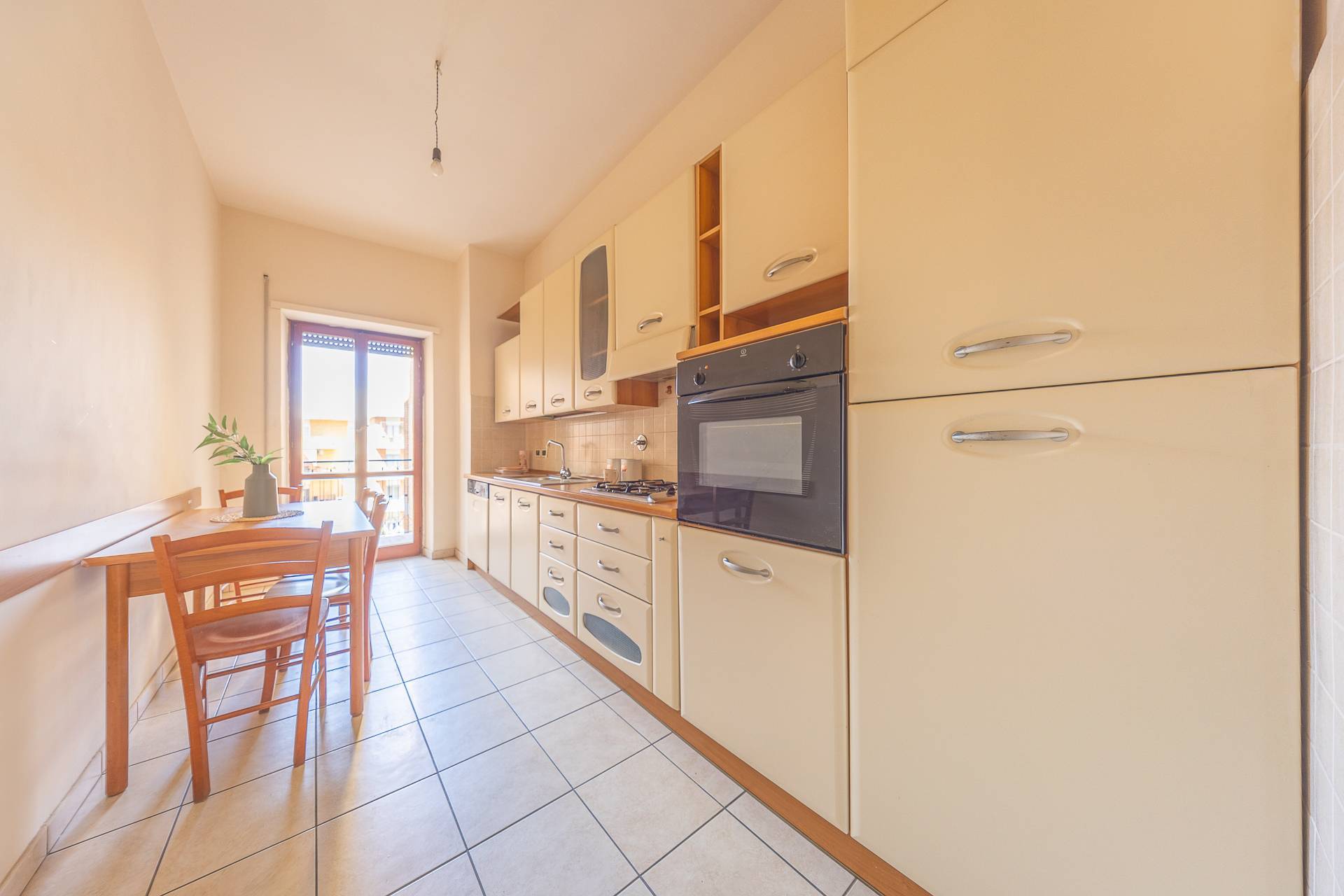 L'immobile si trova in uno stabile costruito nel 1970 circa, ma nel tempo è stato mantenuto in buone condizioni ed è libero subito, pronto per essere abitato. Con una superficie totale di 120 metri quadrati, l'appartamento è composto da tre locali, ovvero: un doppio soggiorno con l'uscita su un grande balcone, due camere da letto, una cucina abitabile anch'essa con l'uscita su un altro balcone, e due bagni.