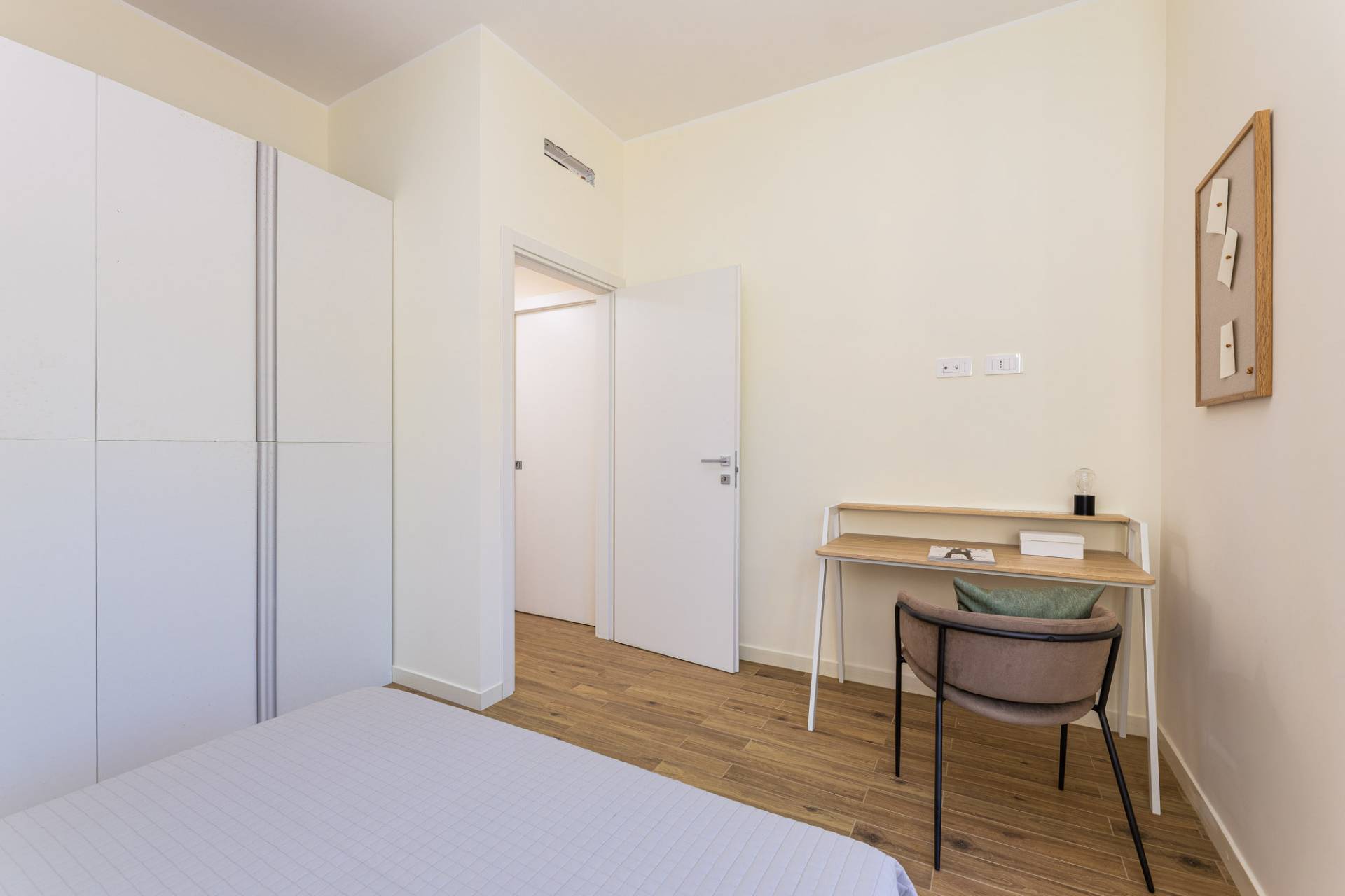 Nuovo, elegante e moderno appartamento composto da: soggiorno con cucina a vista, camera matrimoniale, bagno con doccia, terrazzo molto ampio e cantina. Doppio affaccio ed esposto a Sud.