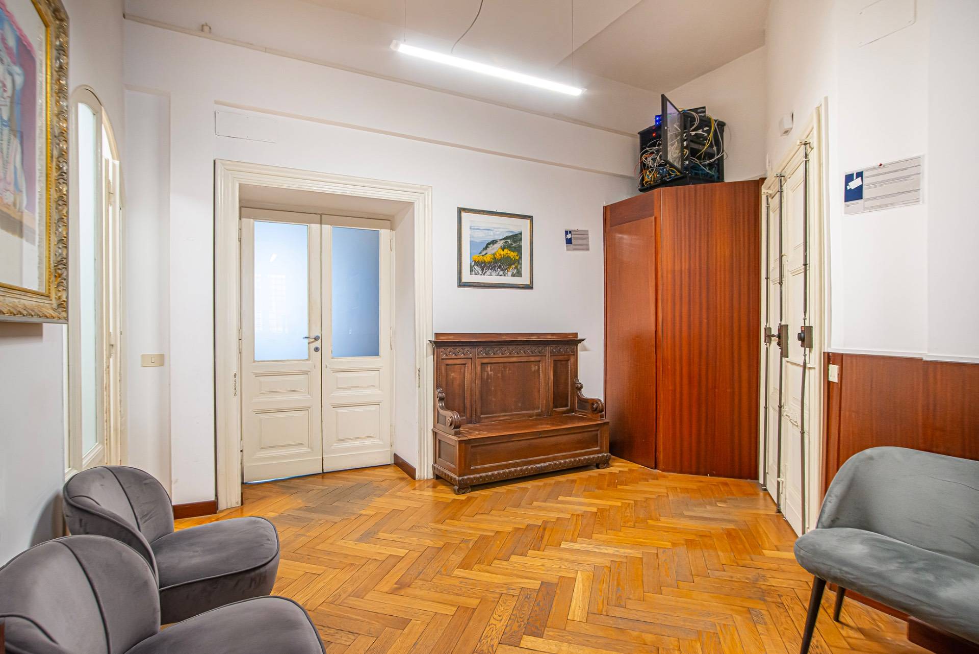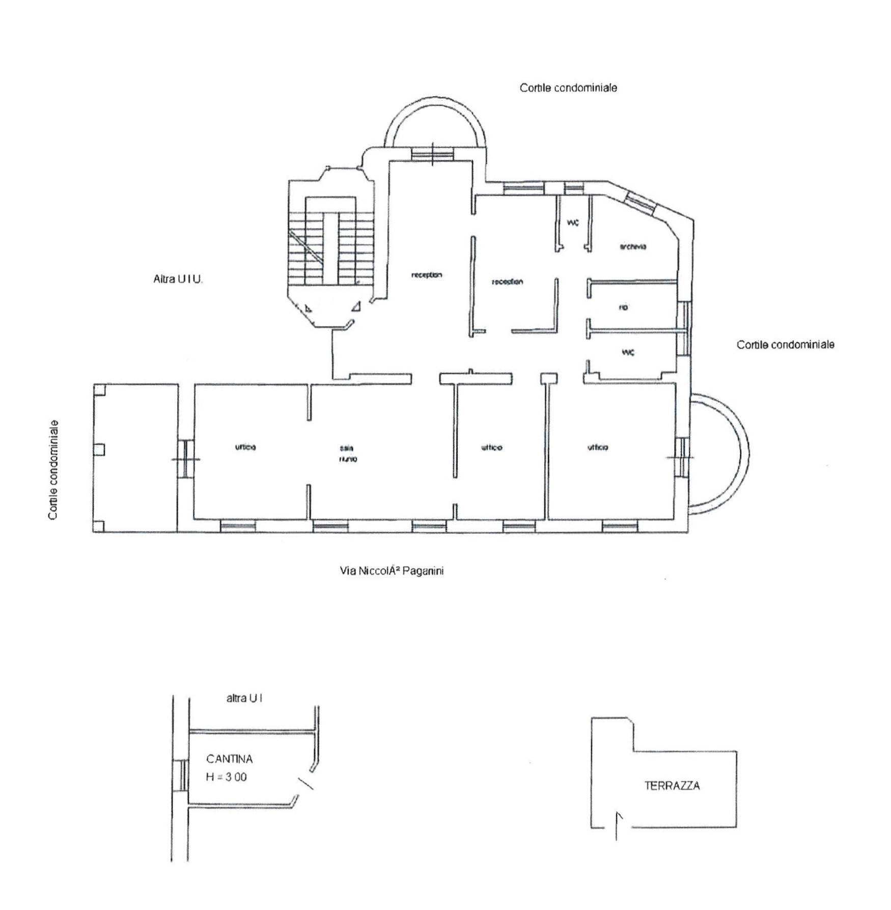 L'immobile si apre su una grande reception, dalla quale si accede a quattro stanze, sale riunioni, archivio e ripostiglio.