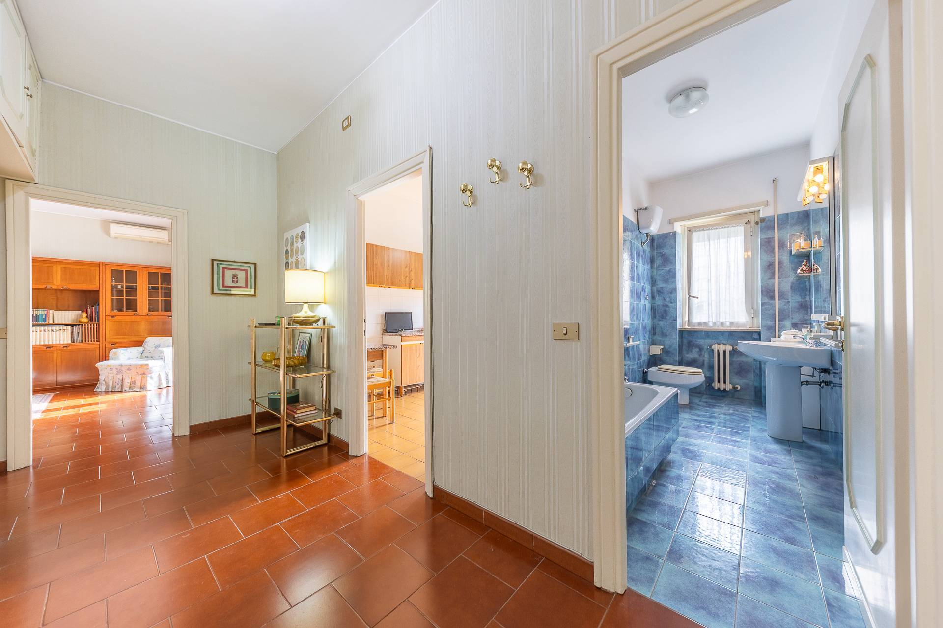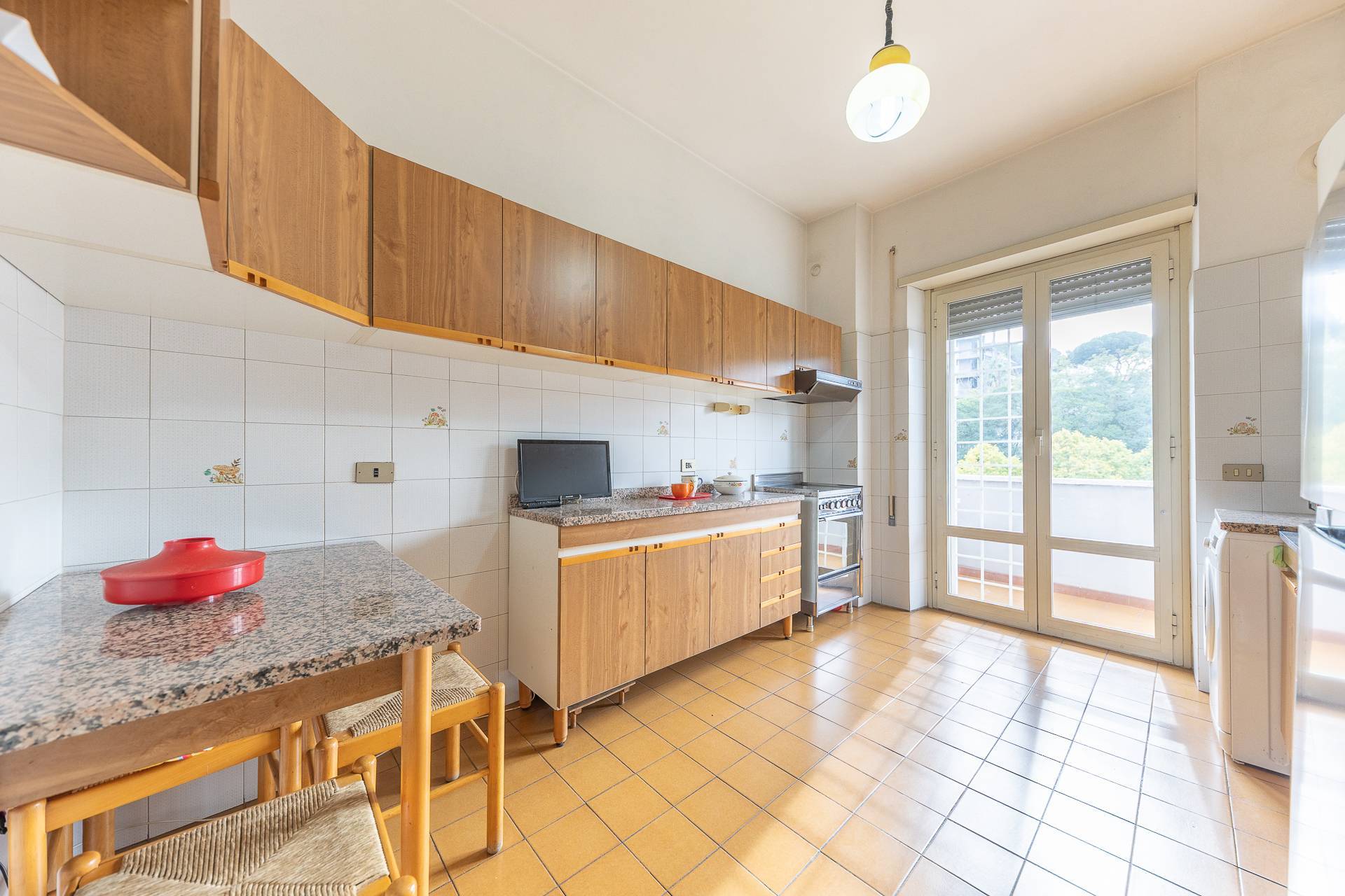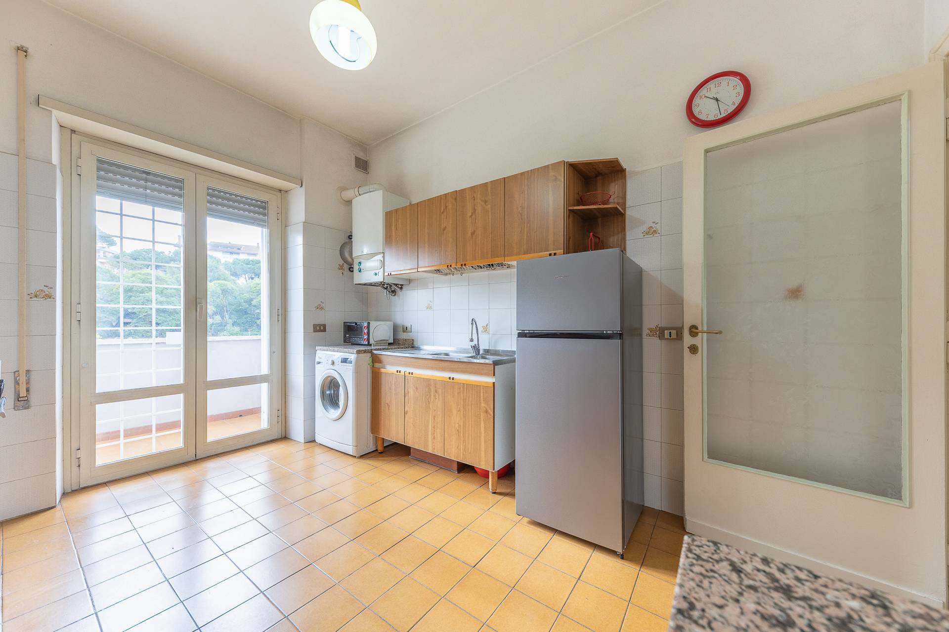 L'immobile si apre su un ingresso che conduce a un luminoso soggiorno con accesso al primo balcone, ideale per momenti di relax. La cucina abitabile, spaziosa e ben organizzata, dispone a sua volta di un secondo balcone, separato dal soggiorno, che garantisce ottima ventilazione.