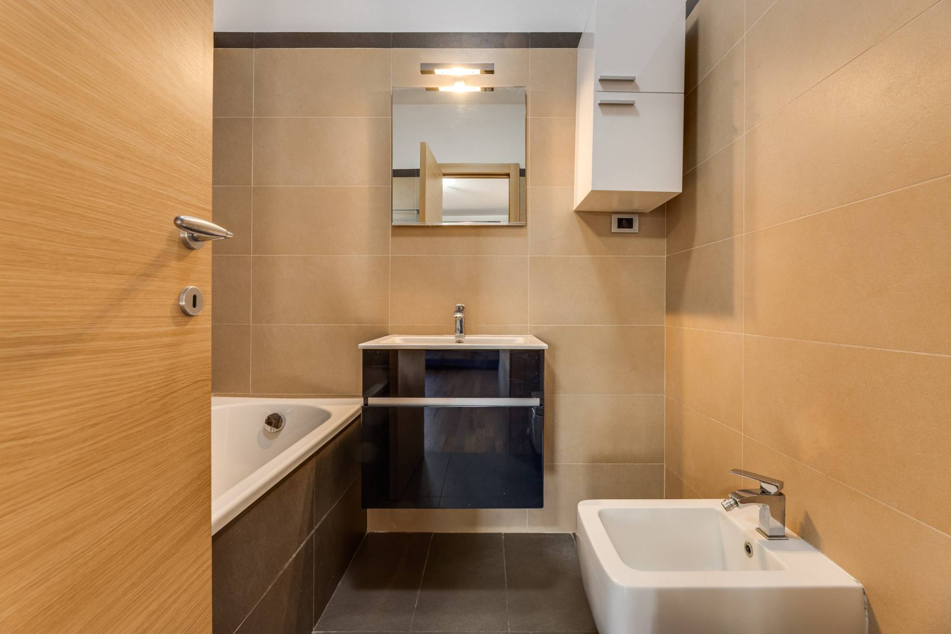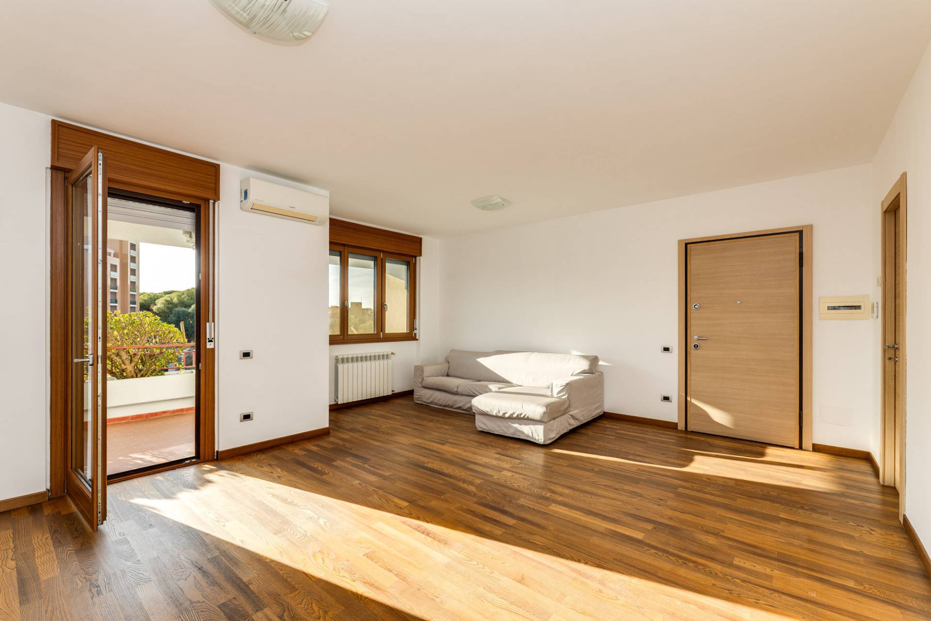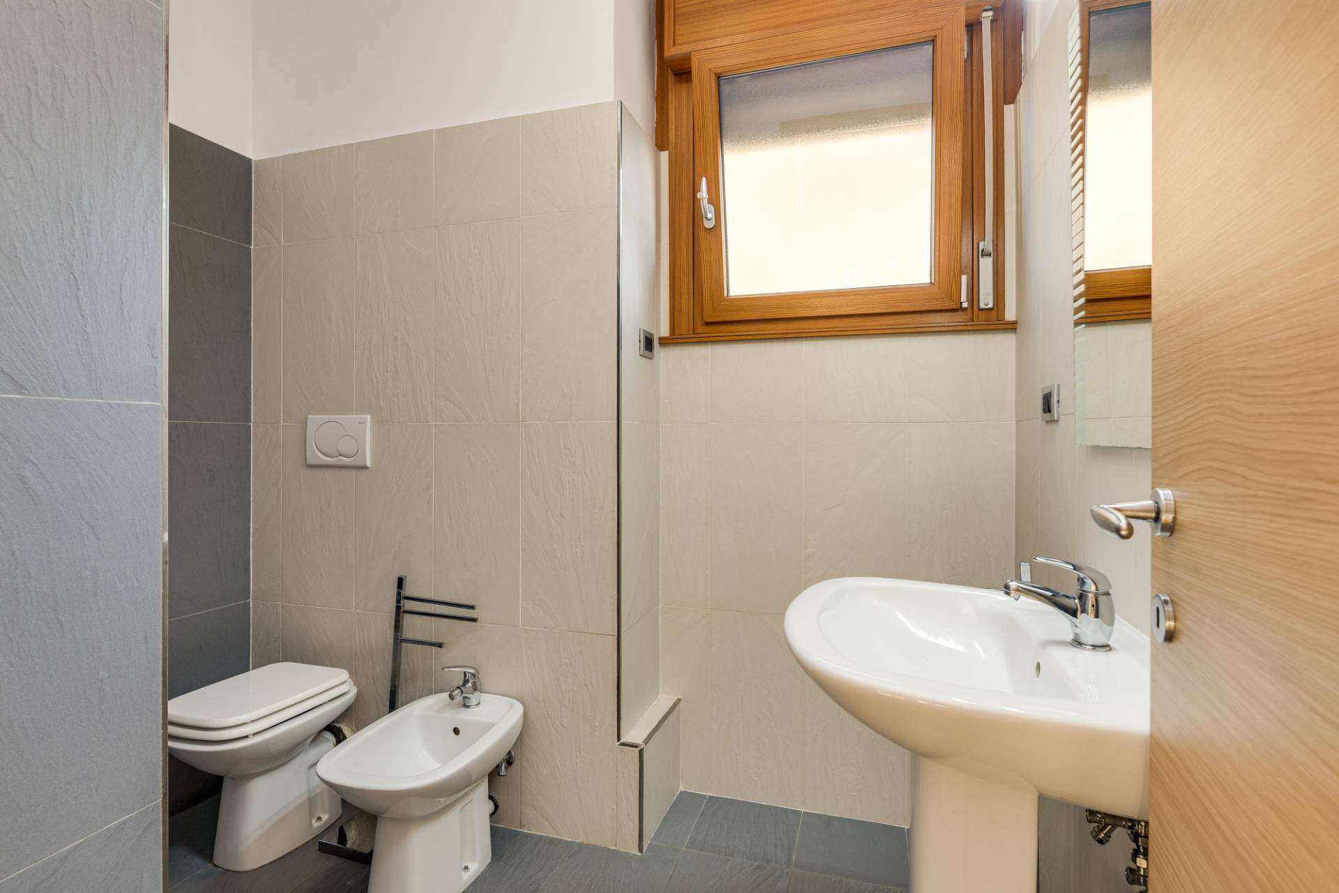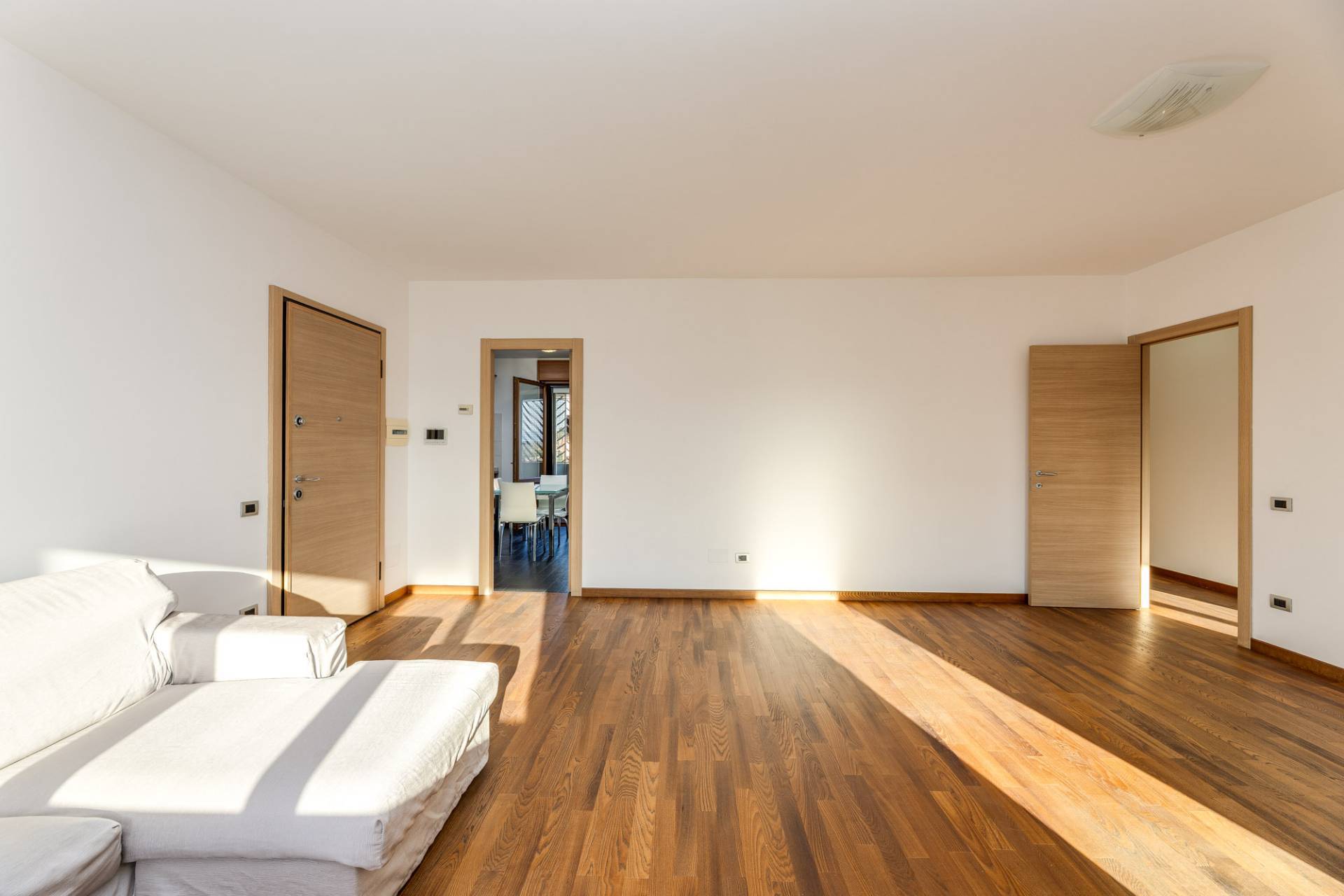 Splendida pavimentazione in parquet in tutto l'appartamento ad eccezione della cucina e dei bagni, infissi doppio vetro in pvc color legno, riscaldamento autonomo. L'appartamento si affitta parzialmente arredato: cucina completa di arredi ed elettrodomestici, divano a tre posti con chaise longue in soggiorno, armadio in una delle camere.