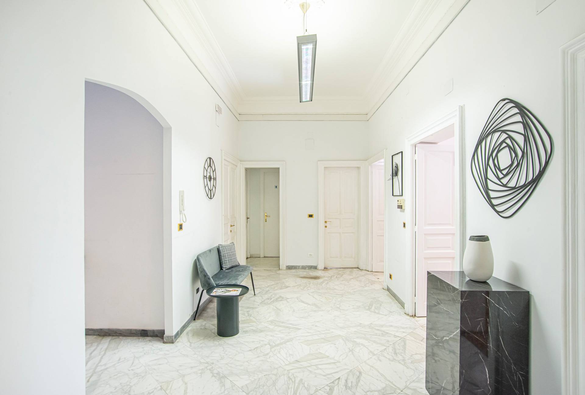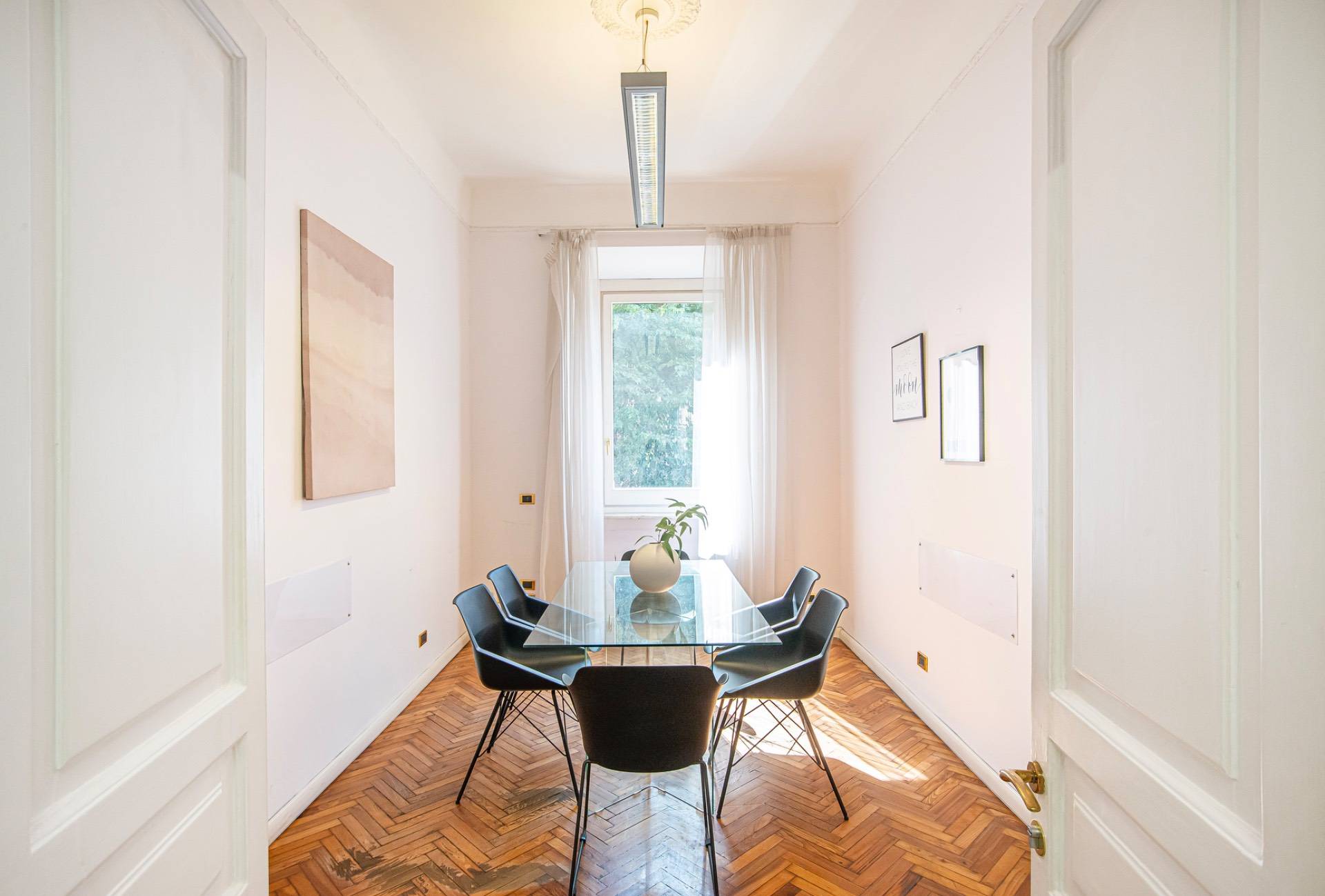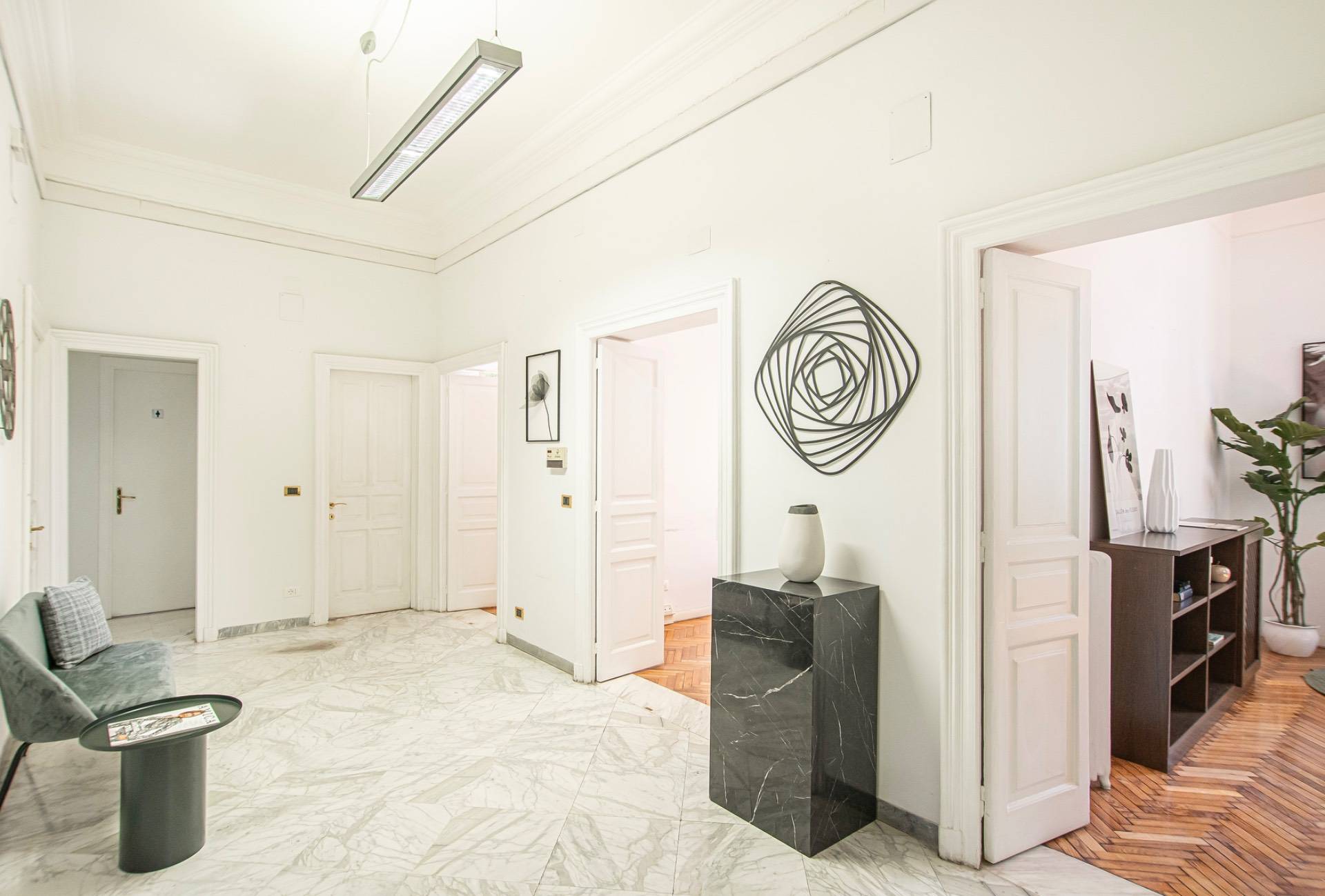 Situato al primo piano di una prestigiosa palazzina storica di soli tre piani, questo luminoso appartamento di 158 mq offre un ambiente raffinato e versatile, ideale sia come residenza di prestigio che come ufficio di rappresentanza.