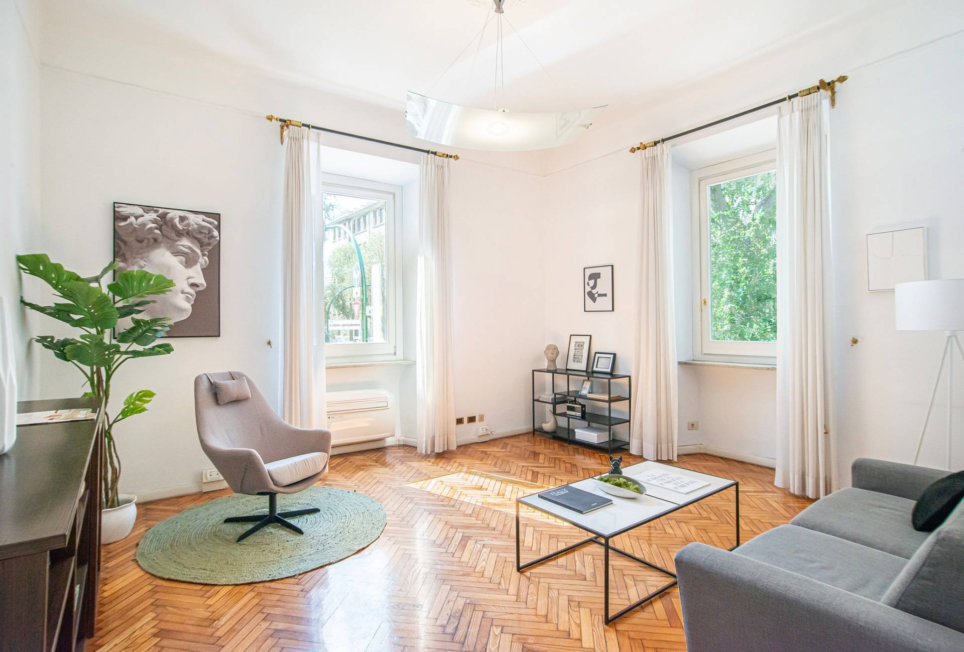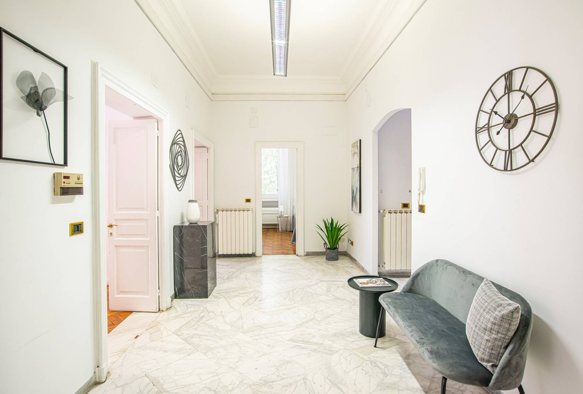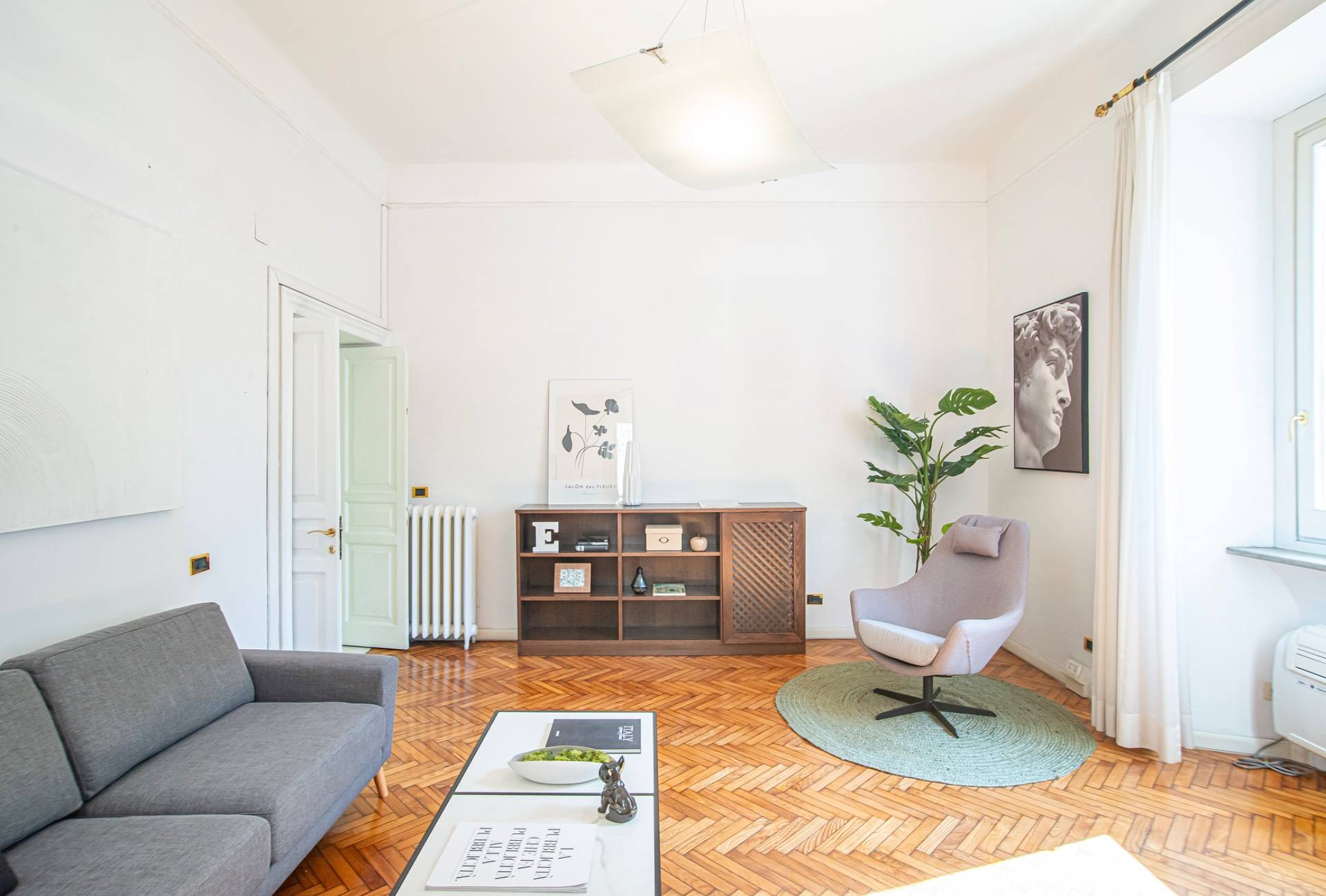Situato al primo piano di una prestigiosa palazzina storica di soli tre piani, questo luminoso appartamento di 158 mq offre un ambiente raffinato e versatile, ideale sia come residenza di prestigio che come ufficio di rappresentanza.