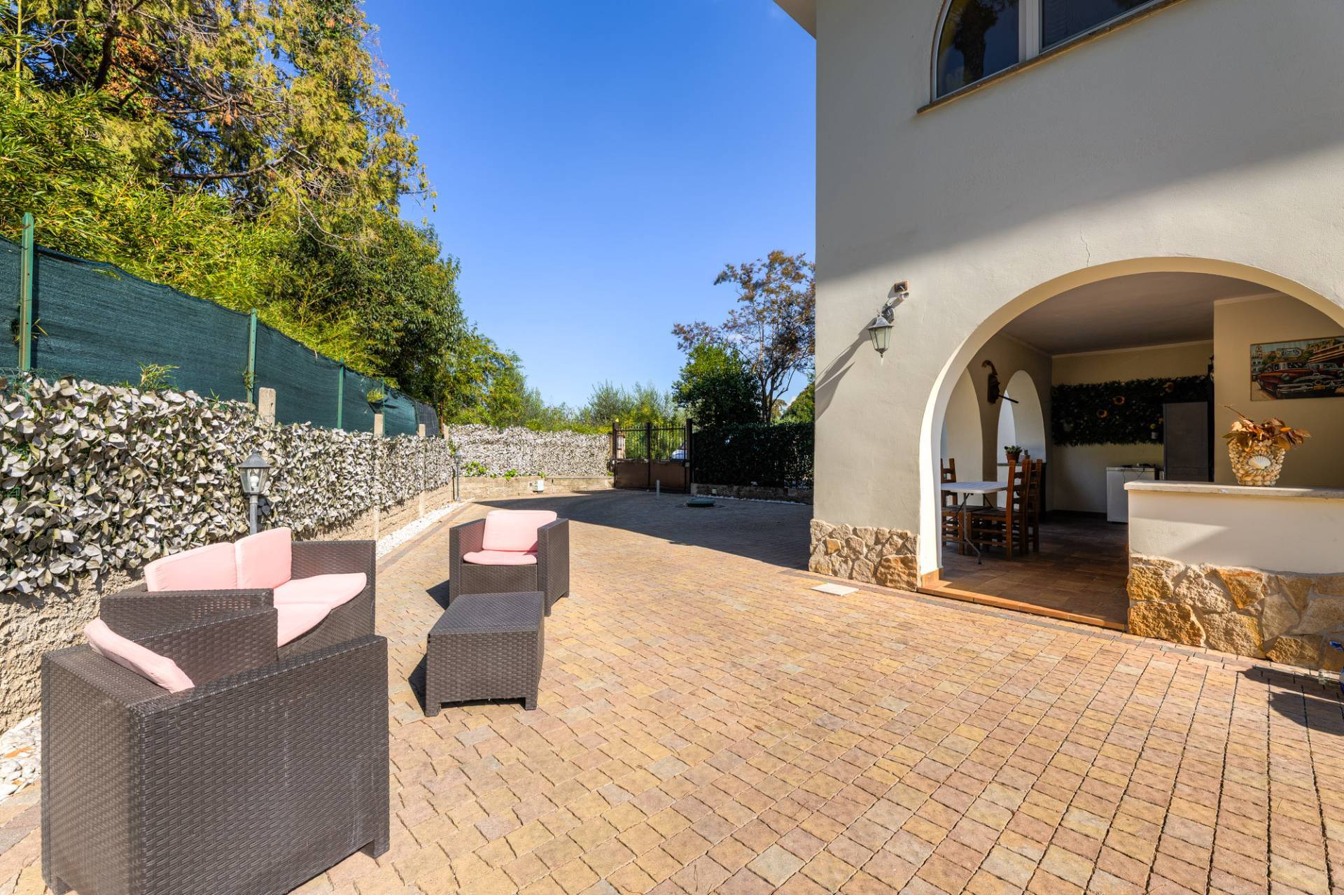 Il giardino privato, ben curato che può ospitare anche sei auto, è il luogo ideale per godersi il bel tempo e organizzare piacevoli momenti all'aperto.